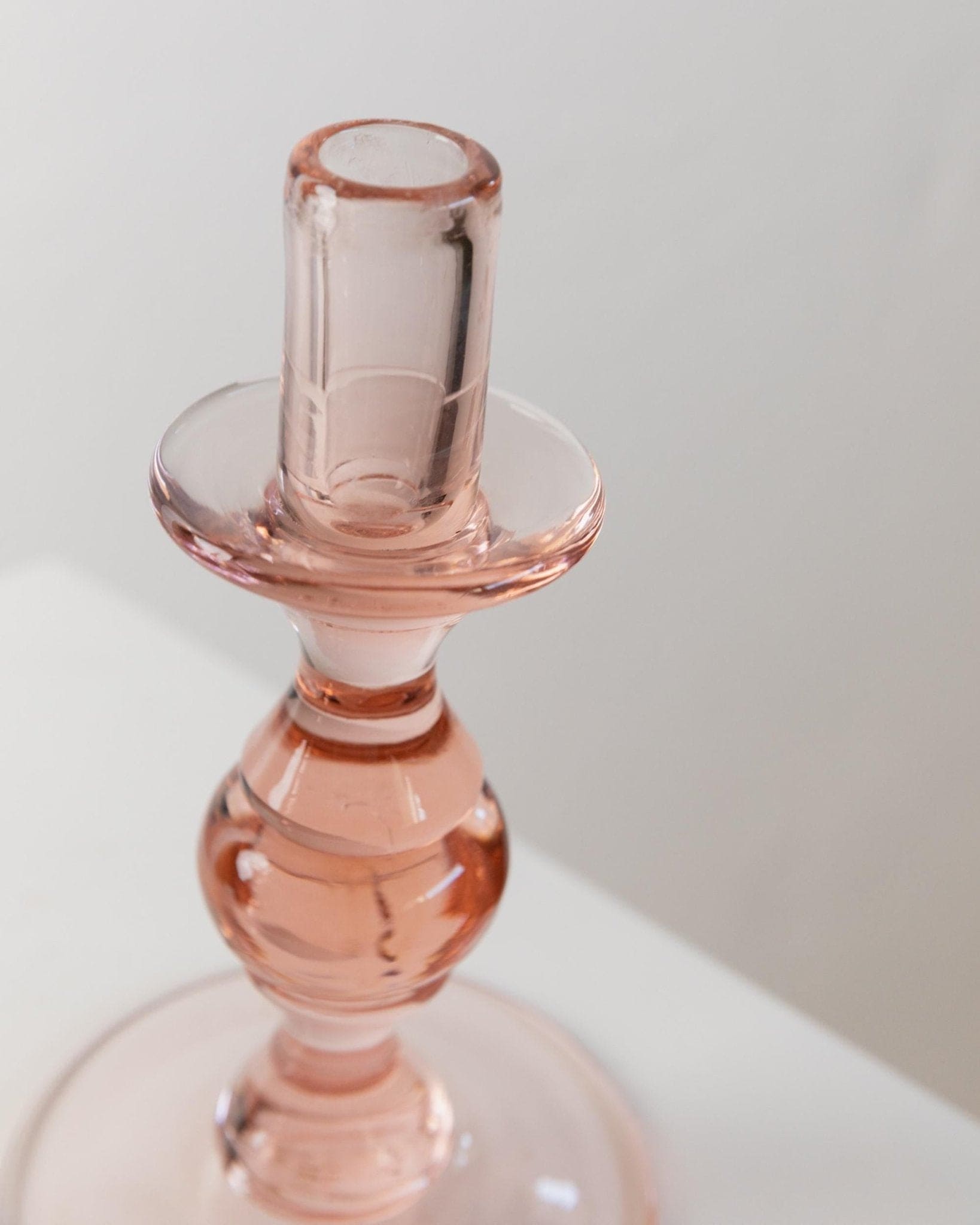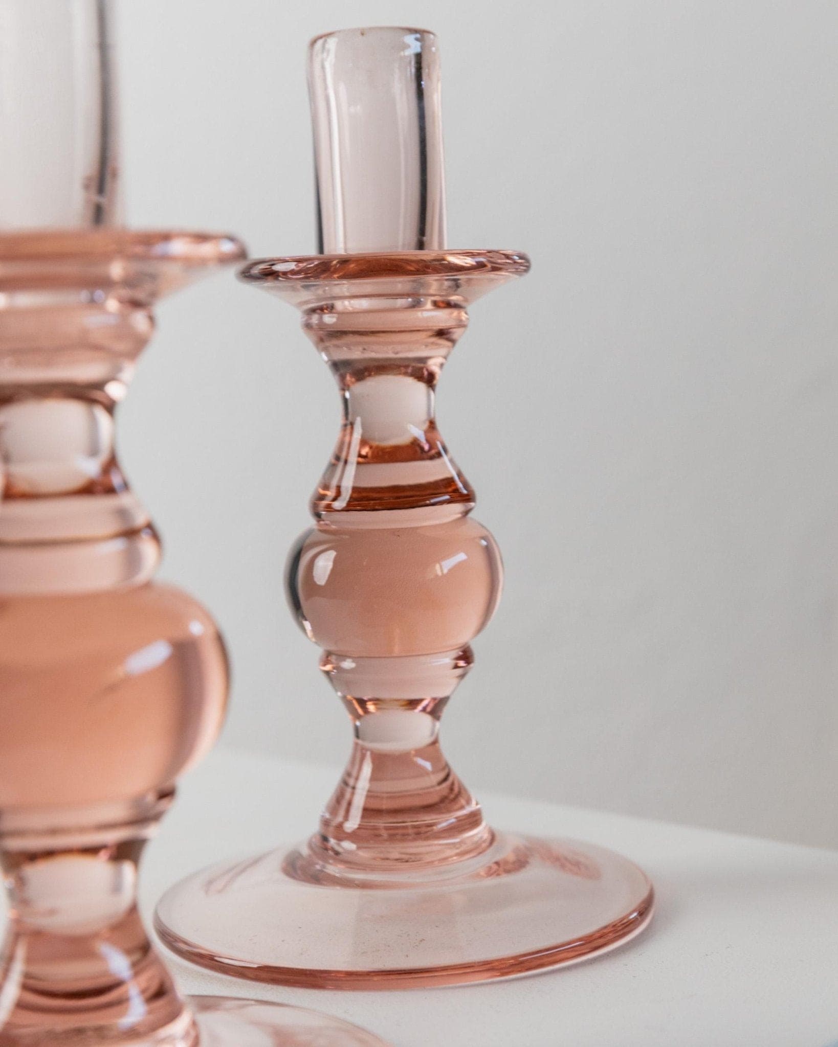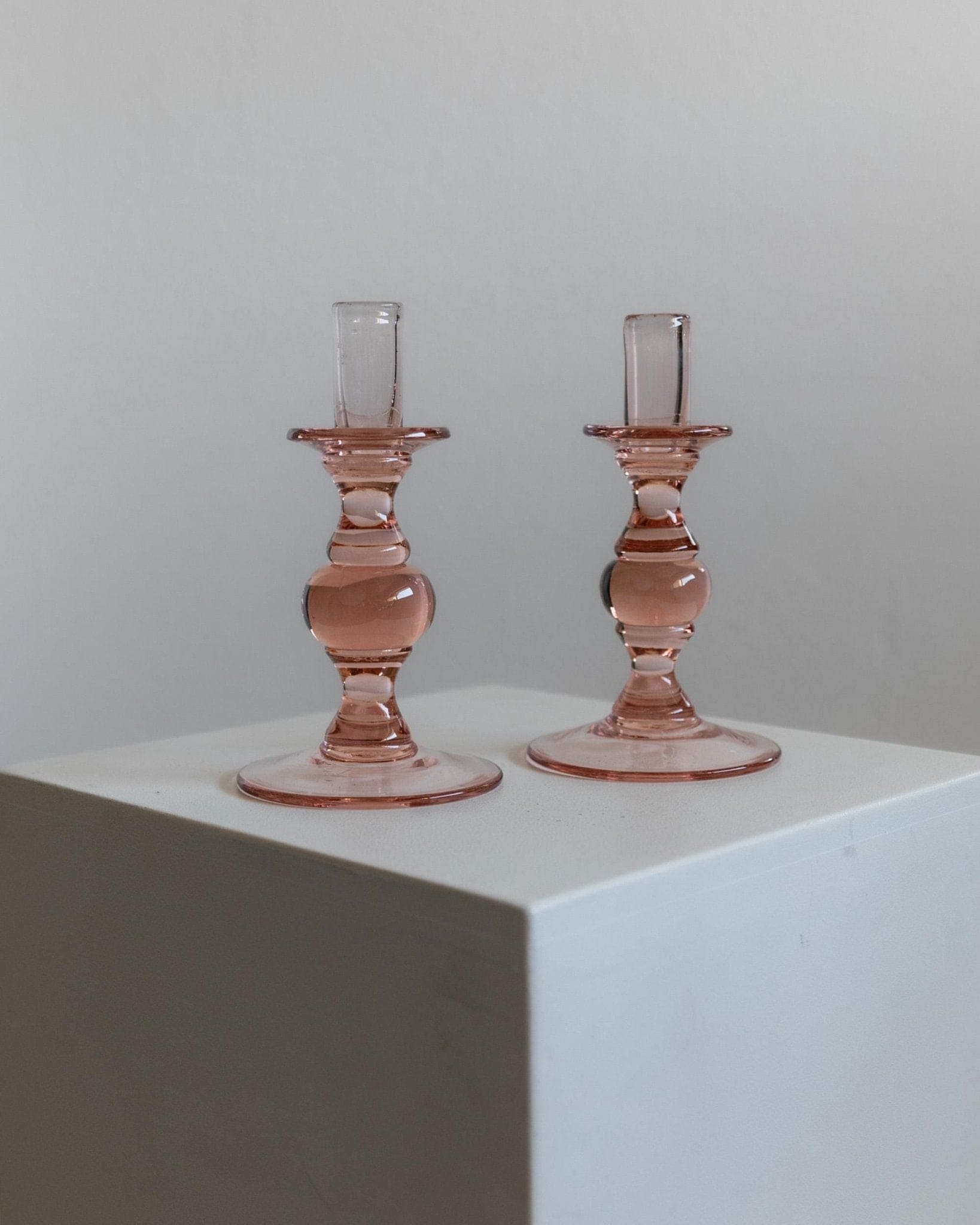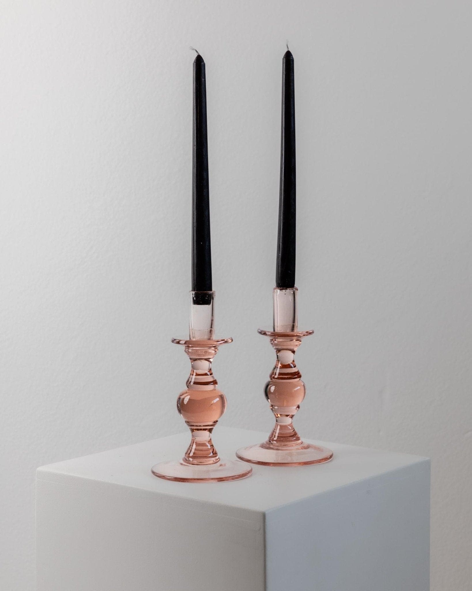 Vintage Kerzenhalter Glas Pfirsich Italien 1980er Retro Set von 2