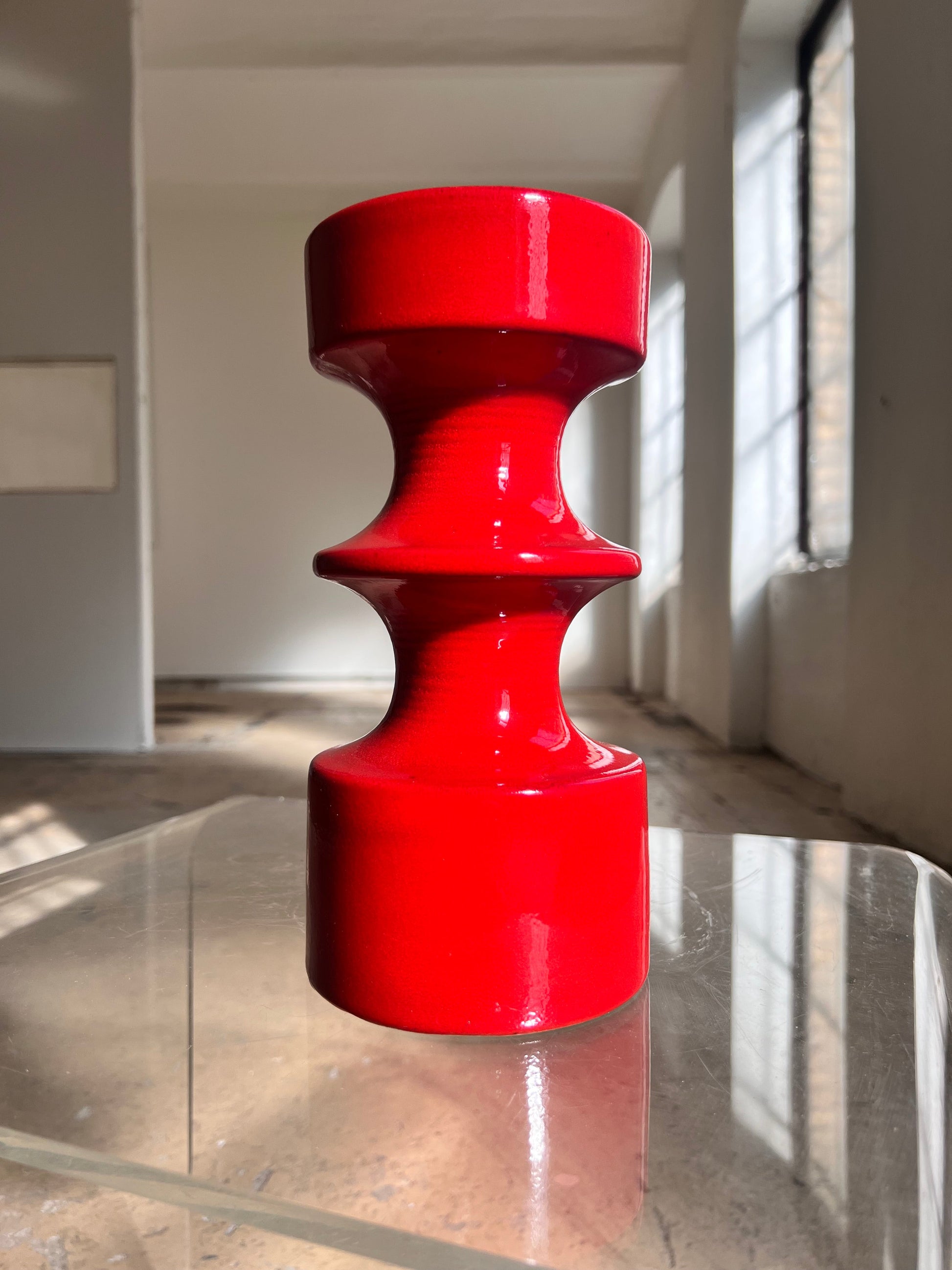 Vintage Kerzenständer Keramik von Cari Zalloni für Steuler rot