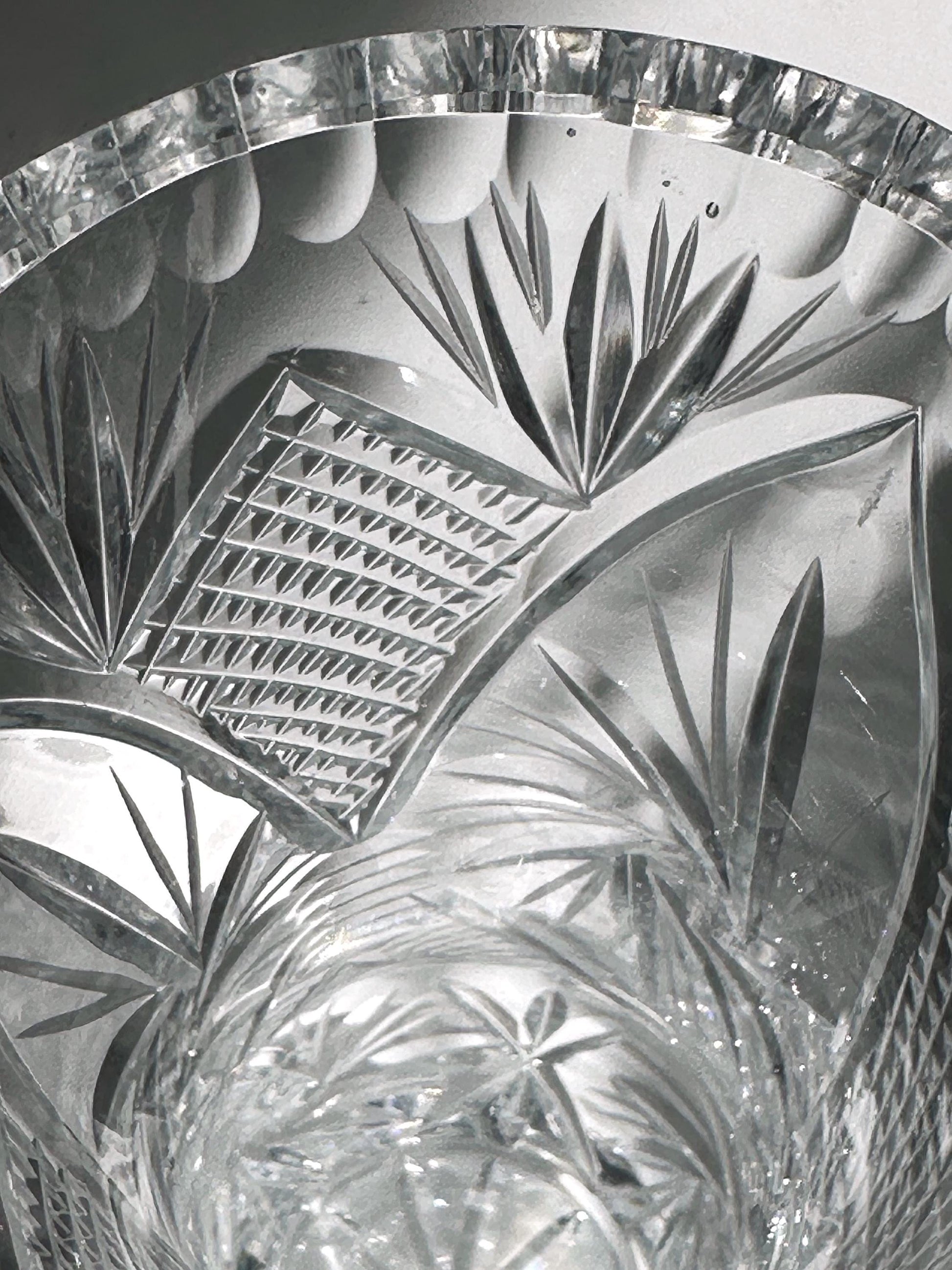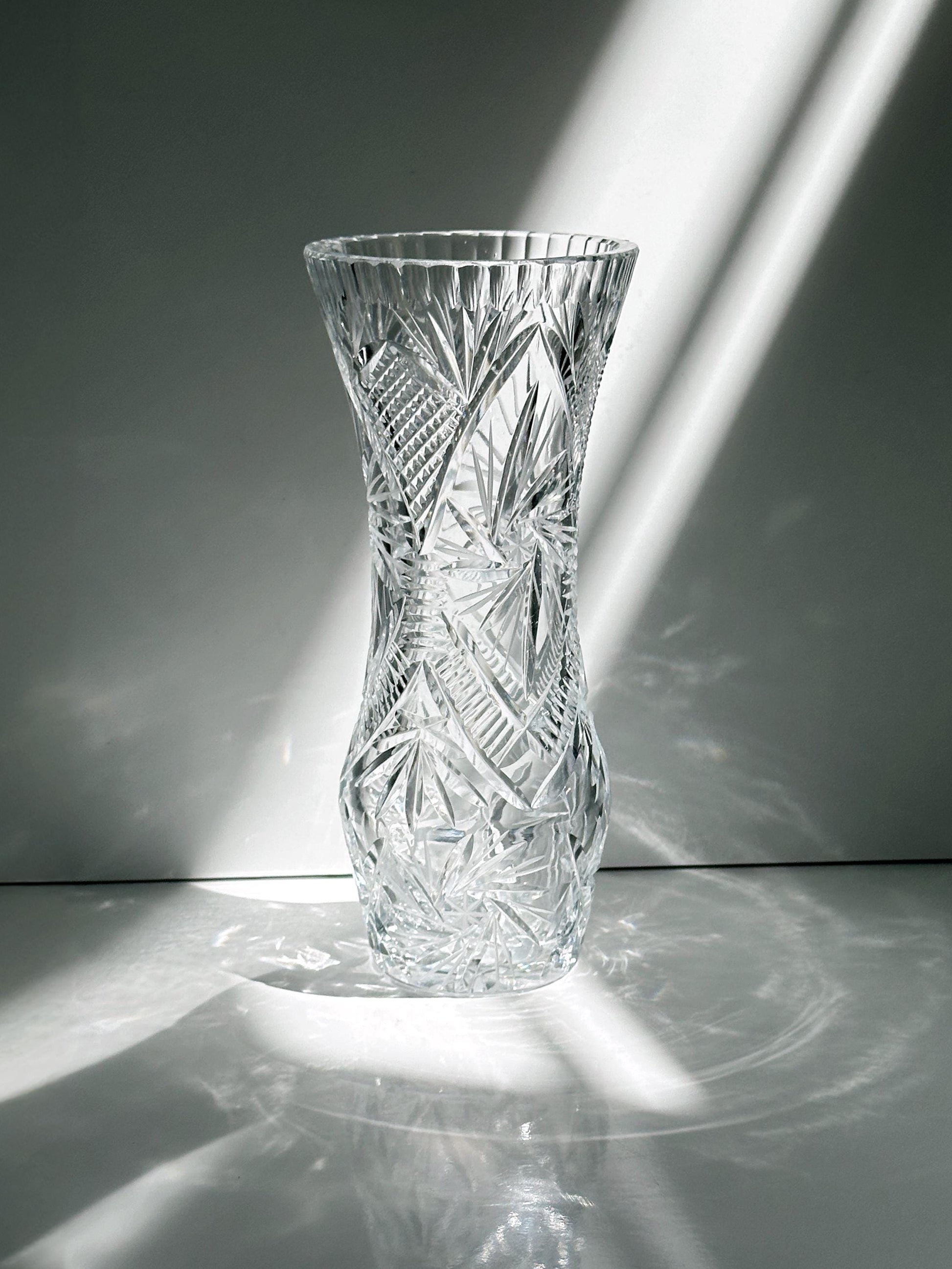 Entdecke die zeitlose Eleganz der Vintage Kristall Glas Vase aus den 1960er und 1970er Jahren – ein echtes Highlight für Liebhaber von Mid Century Modern und Space Age Design. Diese sowjetische Kristallglas Vase besticht durch ihr massives Gewicht und die hochwertige Verarbeitung. Das kunstvolle Bleikristall mit handgeschliffenem Dekor verleiht jedem Raum einen Hauch von Luxus und Retro-Charme. Perfekt als Solitärstück oder als stilvolle Blumenvase für Dein Zuhause.
