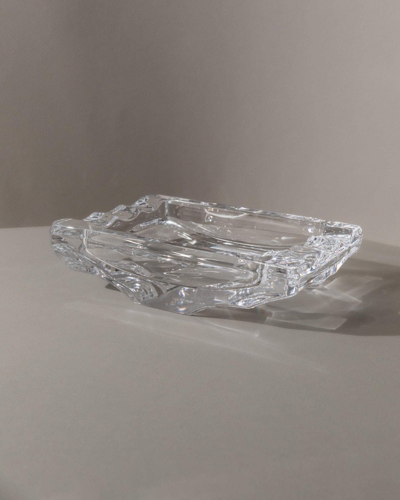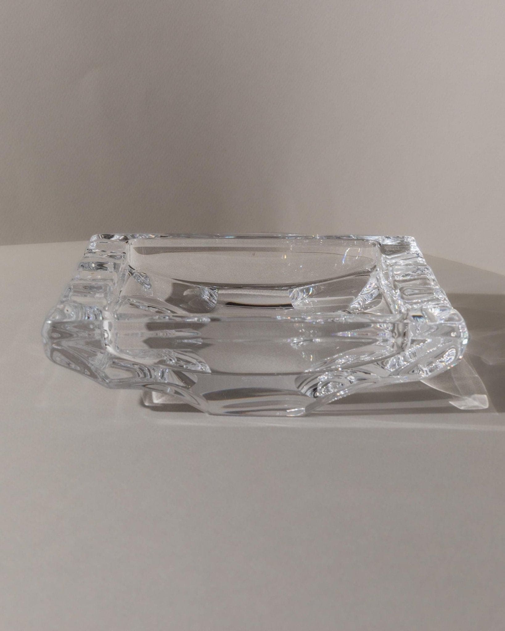 Entdecke den Charme des Space Age mit diesem Vintage Kristallaschenbecher von Sevres Frankreich aus den 1970er Jahren. Das schwere Kristallglas und die markante, rechteckige Form mit skulpturalen Einkerbungen machen dieses Stück zu einem echten Blickfang. Die strukturierte Oberfläche sorgt für faszinierende Lichtreflexionen und unterstreicht die sehr gute Qualität französischer Glaskunst. Ob als elegantes Tisch-Accessoire oder als Geschenk – dieses Designobjekt bringt zeitlose Eleganz in jedes Zuhause.