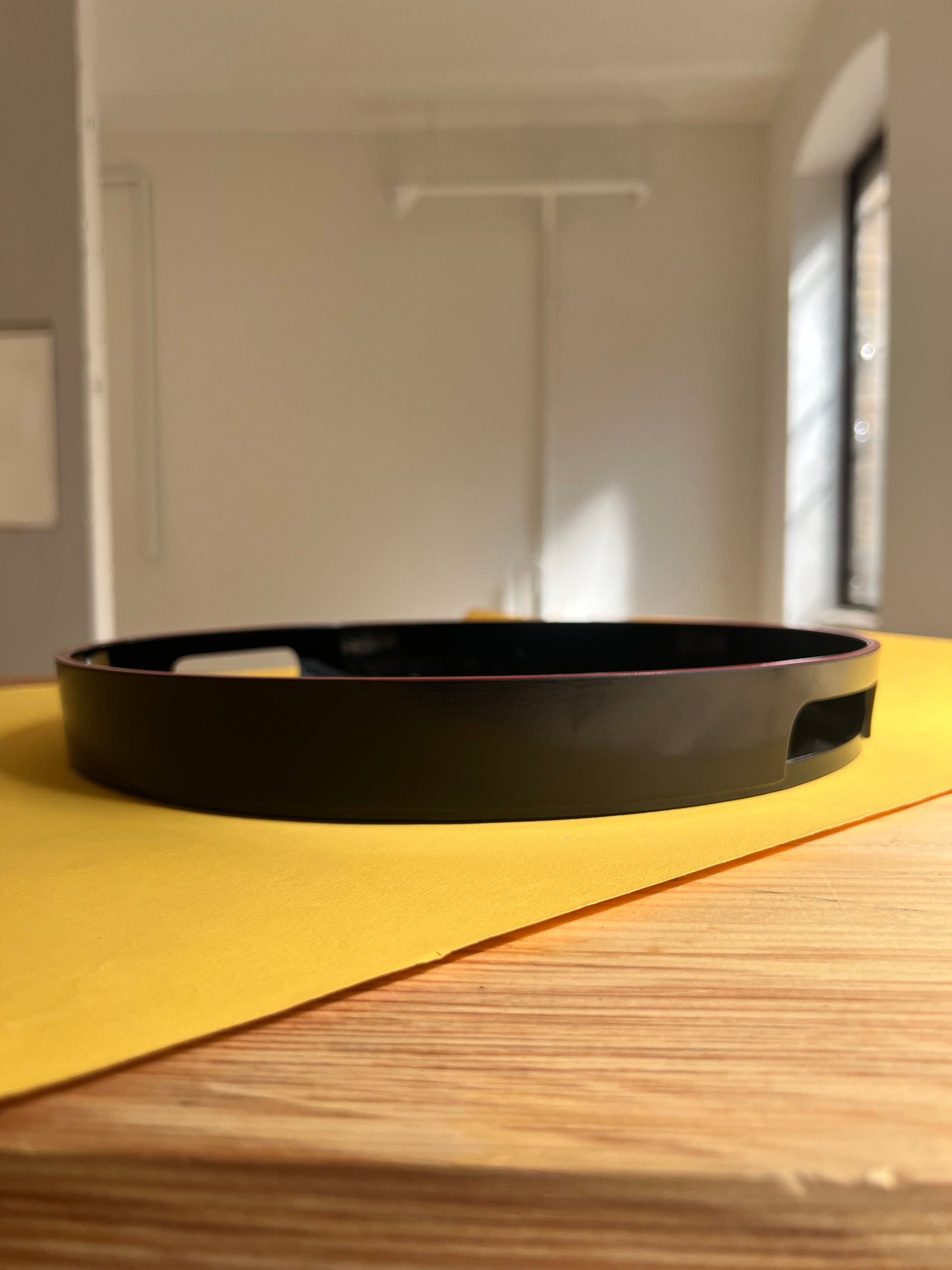 Entdecke das einzigartige Vintage Lacktablett aus der Shōwa-Periode der 70er Jahre – ein echtes Highlight für Deine Küche oder Dein Wohnzimmer. Das runde Tablett wurde in Japan gefertigt und besticht durch seinen eleganten schwarzen Lackgrund mit auffälligem roten Rand. Das kunstvolle Muster aus stilisierten Blumen und Gräsern in Rot und Gold verleiht dem Tablett einen besonderen Charme. Dank der seitlichen Griffe lässt sich das Tablett bequem tragen und vielseitig einsetzen.