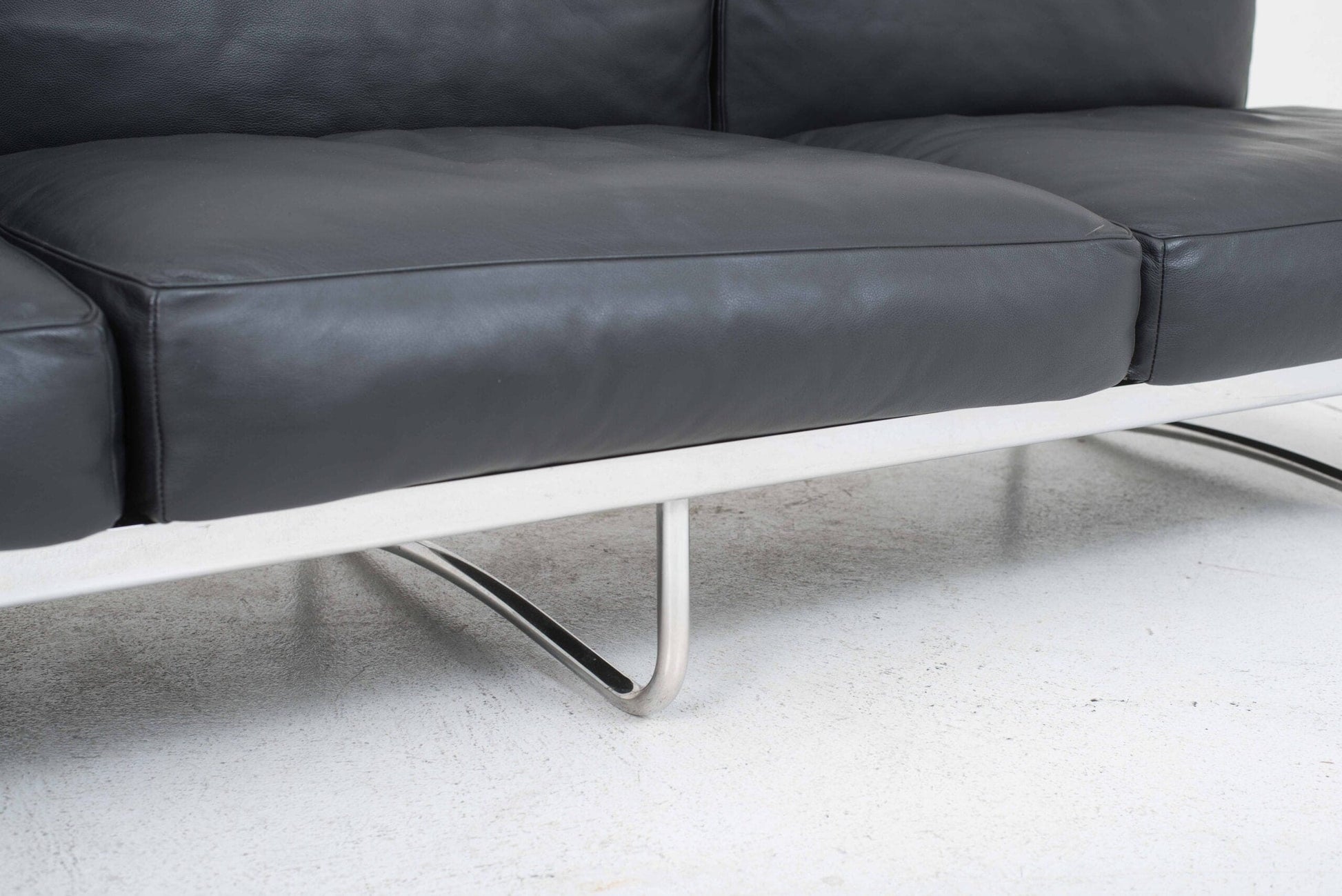 - Material: Verchromter Stahlrohrrahmen, schwarze Lederkissen mit Daunenfüllung