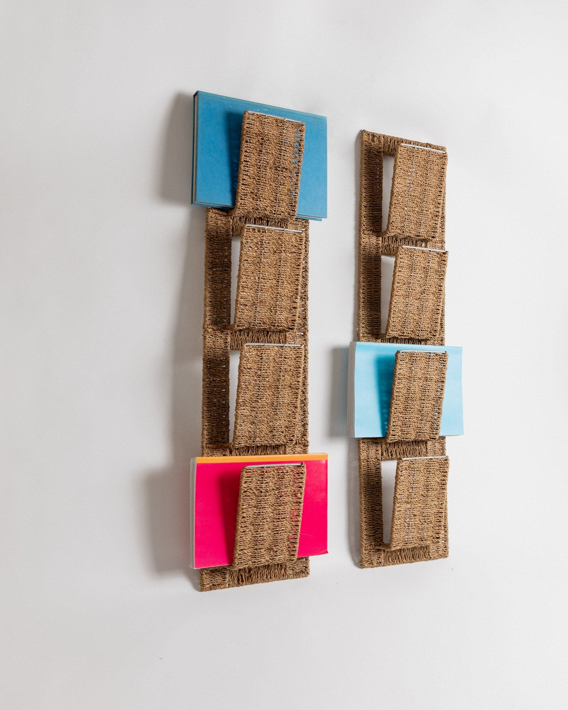 Entdecke den Charme der 1980er Jahre mit diesem Set aus 2 Vintage Magazinständern aus Rattan. Diese mid-century modern Designstücke aus Italien bieten eine stilvolle Möglichkeit, Zeitschriften, Bücher und Accessoires zu verstauen. Mit ihren 4 Fächern sind sie nicht nur praktisch, sondern auch ein dekoratives Highlight für Deine Wand. Die schlichte, flache Form fügt sich harmonisch in Dein Ambiente ein.