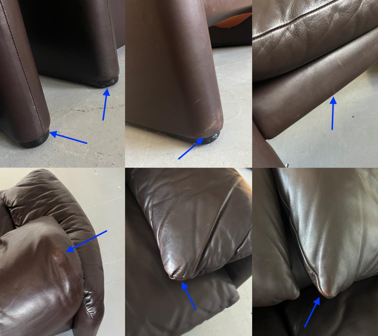 - Dunkelbraunes Leder, sehr gut erhalten mit leichten, altersbedingten Gebrauchsspuren (siehe Fotos)