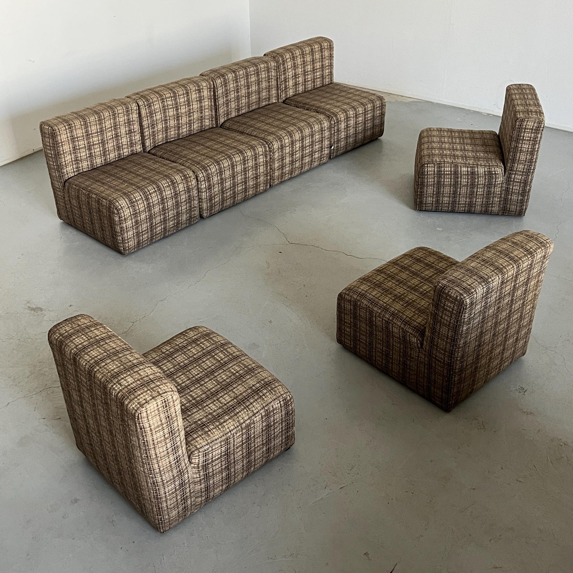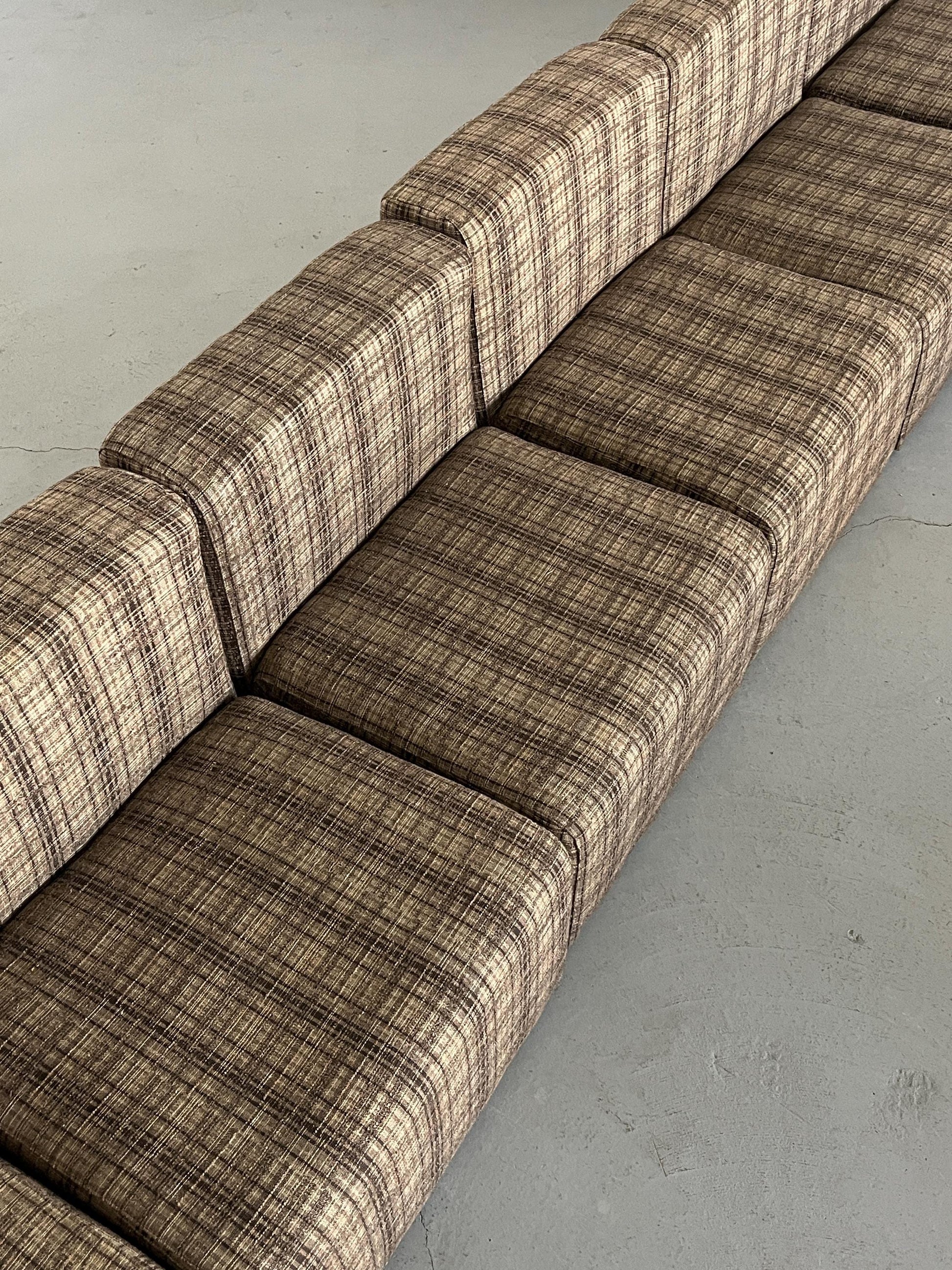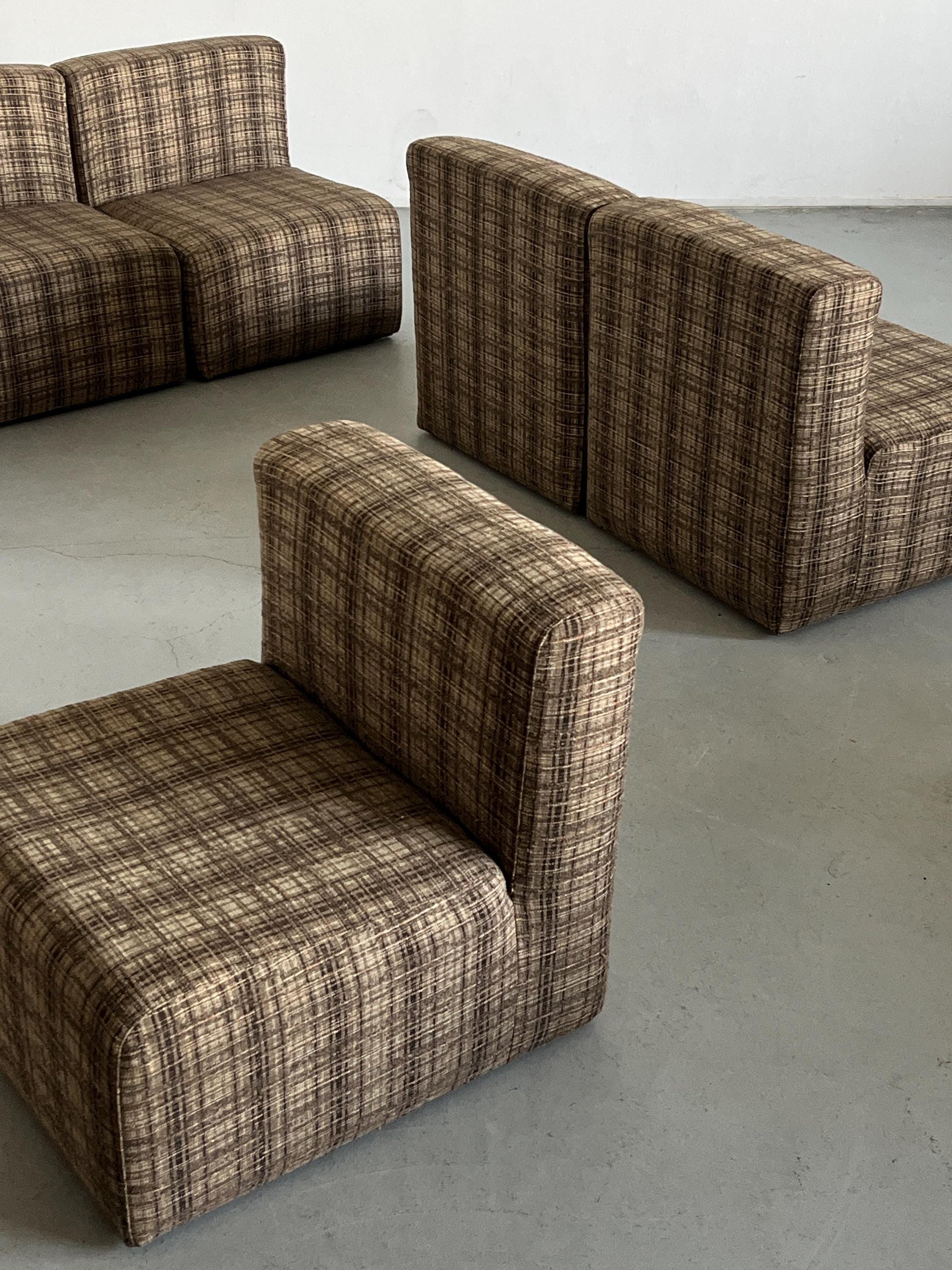 Vintage Modularsitz von Loschi+Malavasi in Braun kariert 1970er Italien Set von 7