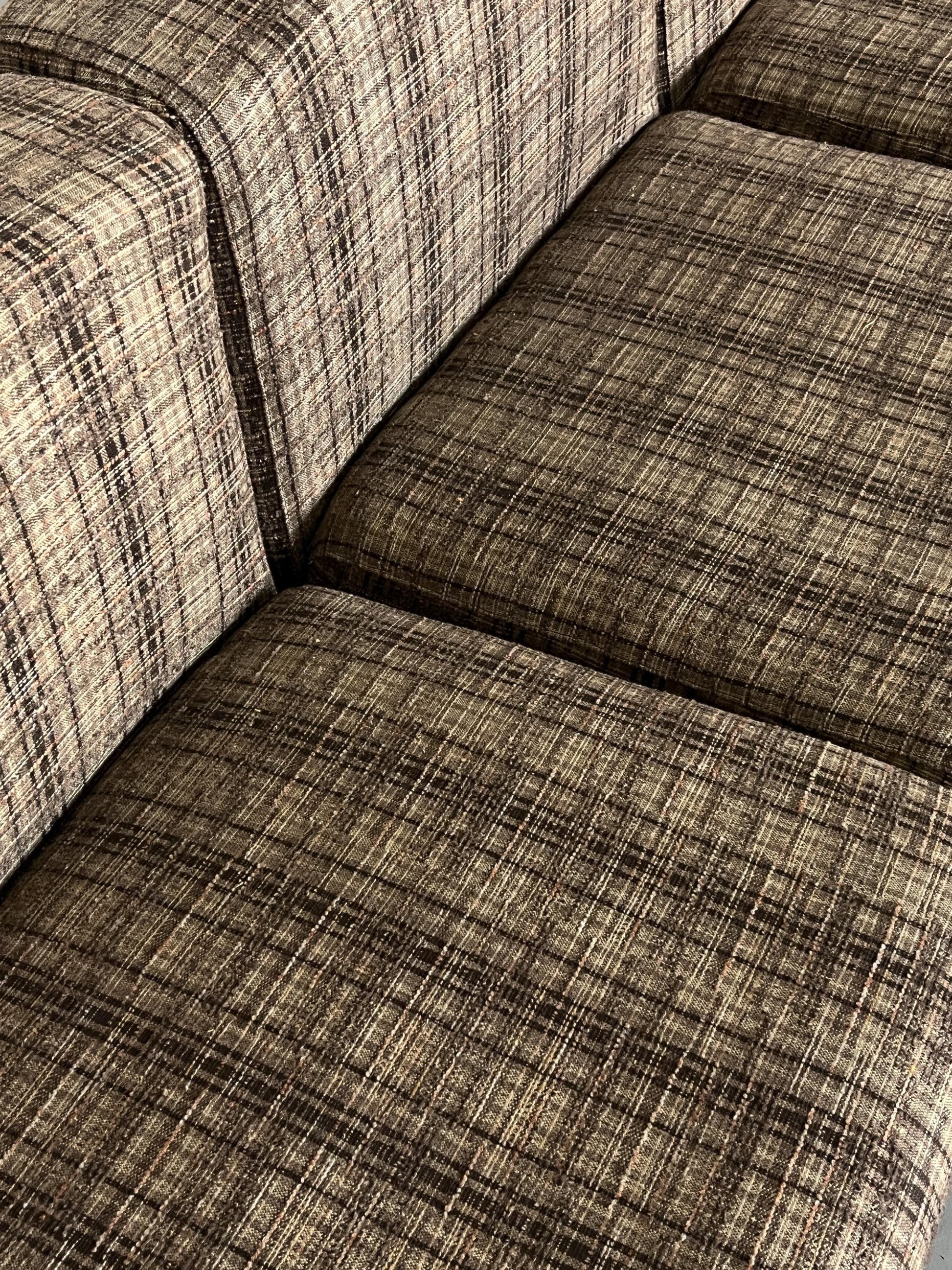 Entdecke ein außergewöhnliches Vintage Modularsitz-Set von Loschi+Malavasi aus den 1970er Jahren – ein echtes Highlight für Liebhaber von Mid Century Modern und Space Age Design. Das siebenteilige Set besticht durch seine charakteristische braun-karierte Polsterung und die hochwertige, aufwendig gewebte Stoffqualität. Jedes Modul ist einzeln nutzbar und lässt sich flexibel zu verschiedenen Sitzlandschaften arrangieren – ob als großzügiges Sofa oder als einzelne Lounge Chairs. Die italienische Marke Loschi e Malavasi aus Modena steht für sehr gute Qualität und zeitlose Eleganz, die in diesem Set perfekt zum Ausdruck kommt.
