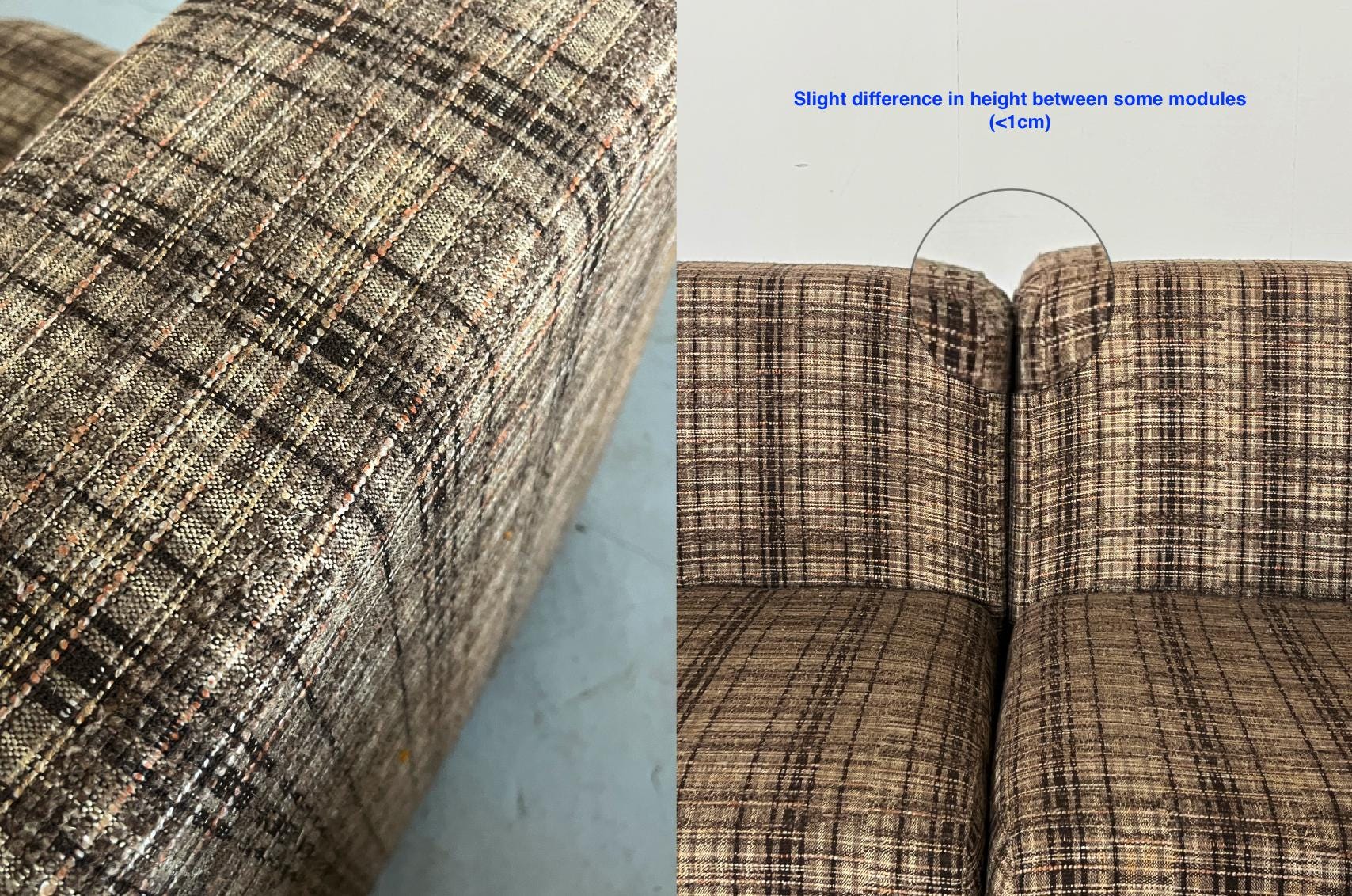 - Originalzustand mit altersgemäßen Gebrauchsspuren, Polsterung in sehr gutem Zustand, minimale Höhenunterschiede (<1 cm) zwischen den Modulen