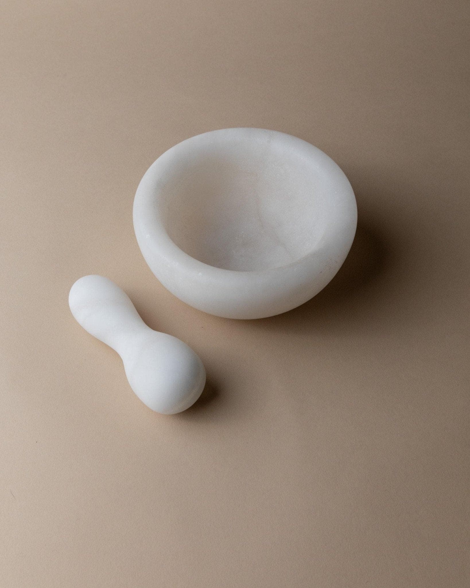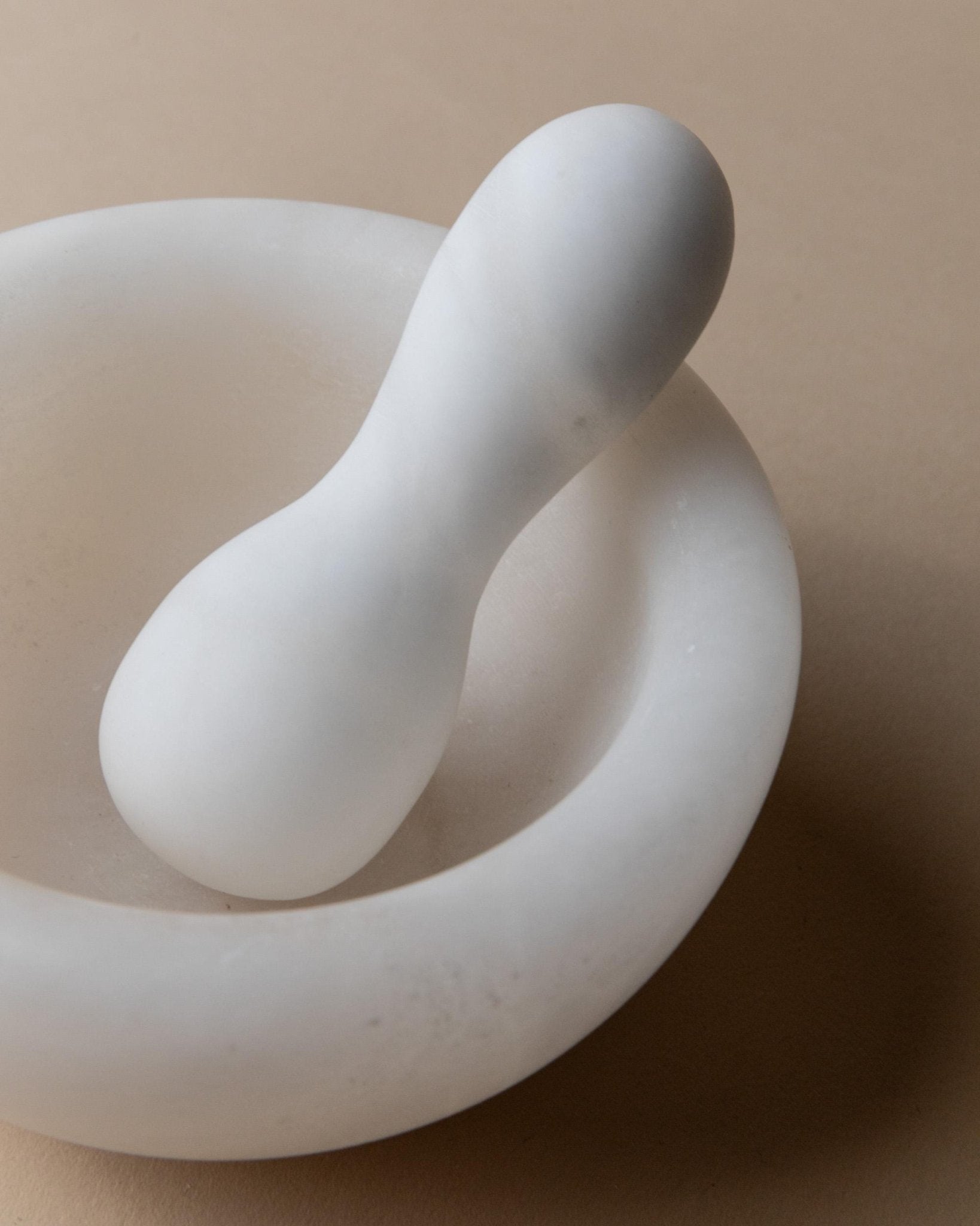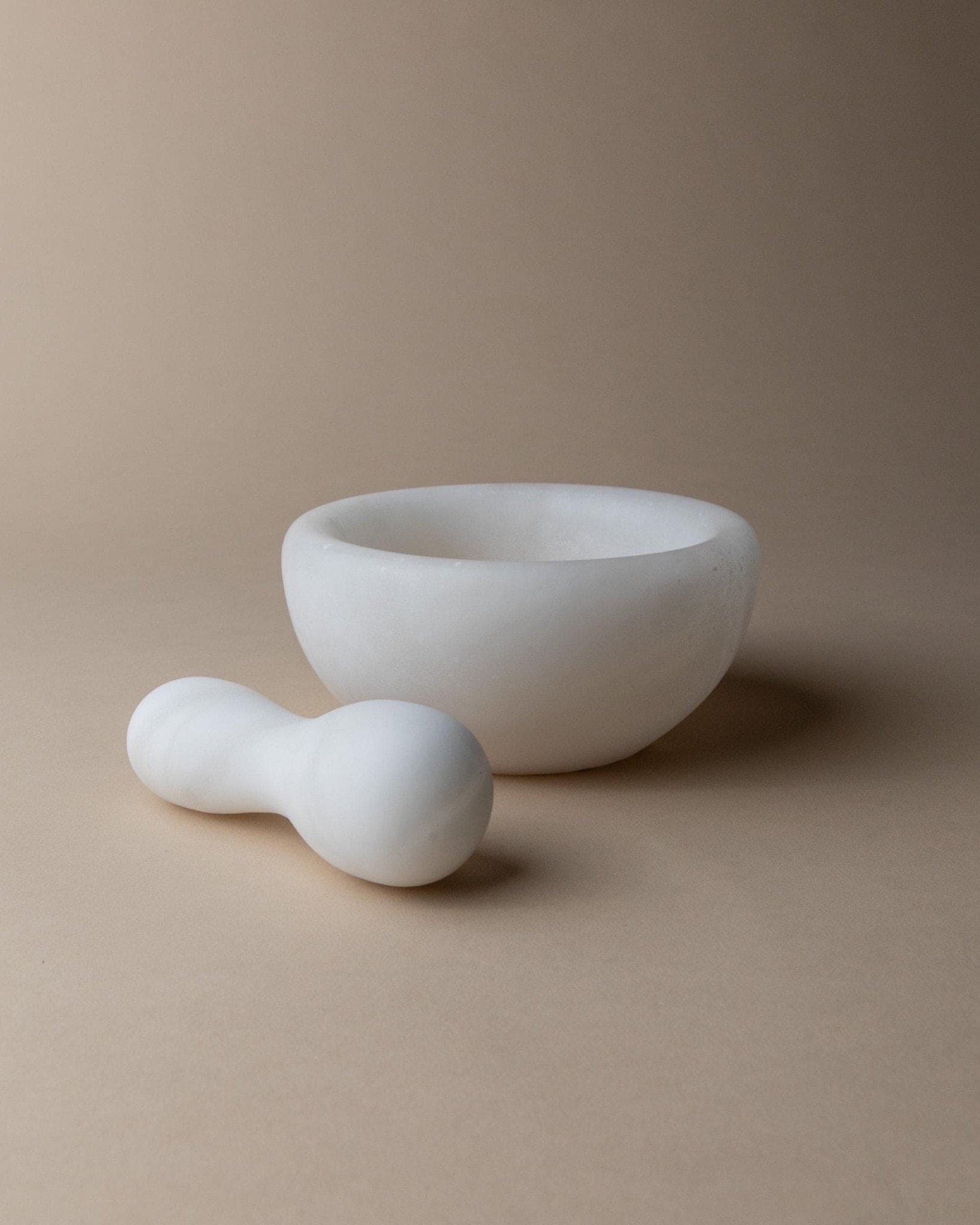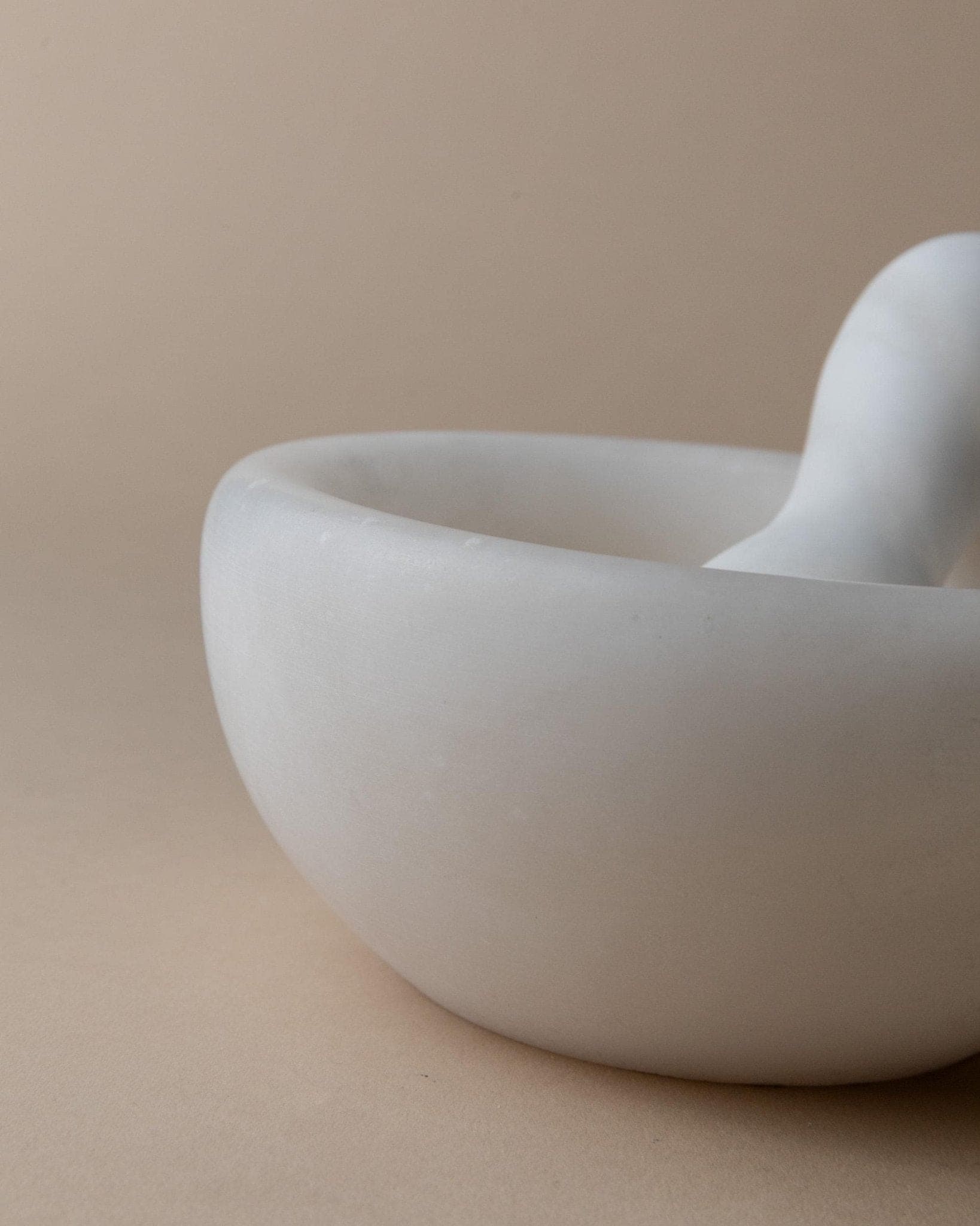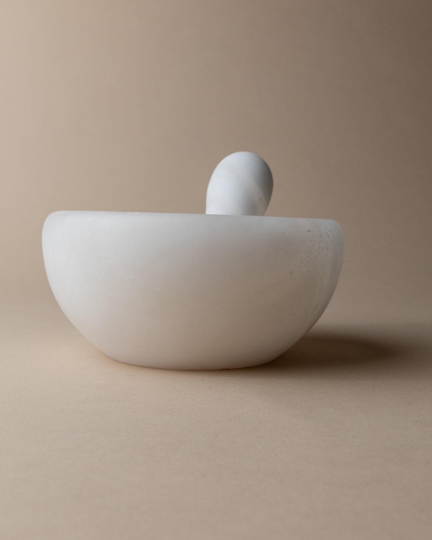 Vintage Mörser und Stößel Marmor Weiß Mid Century Design Italien 1980er
