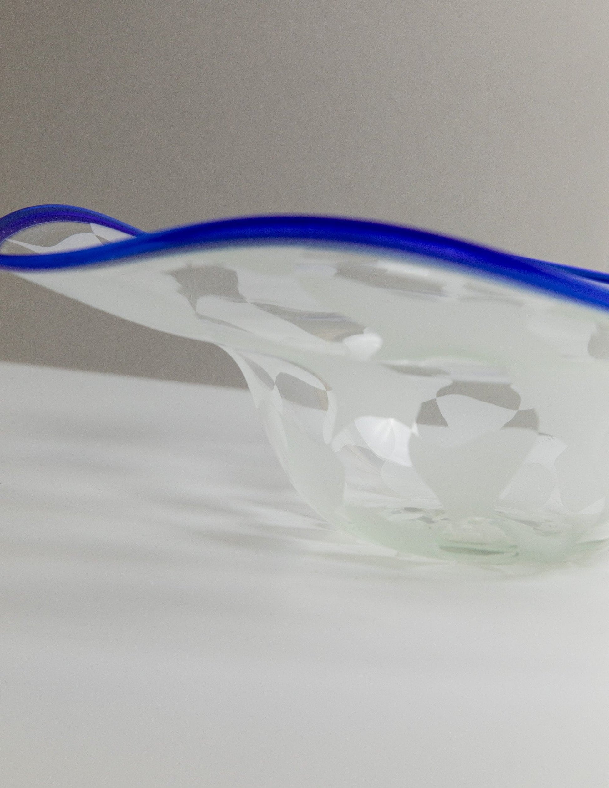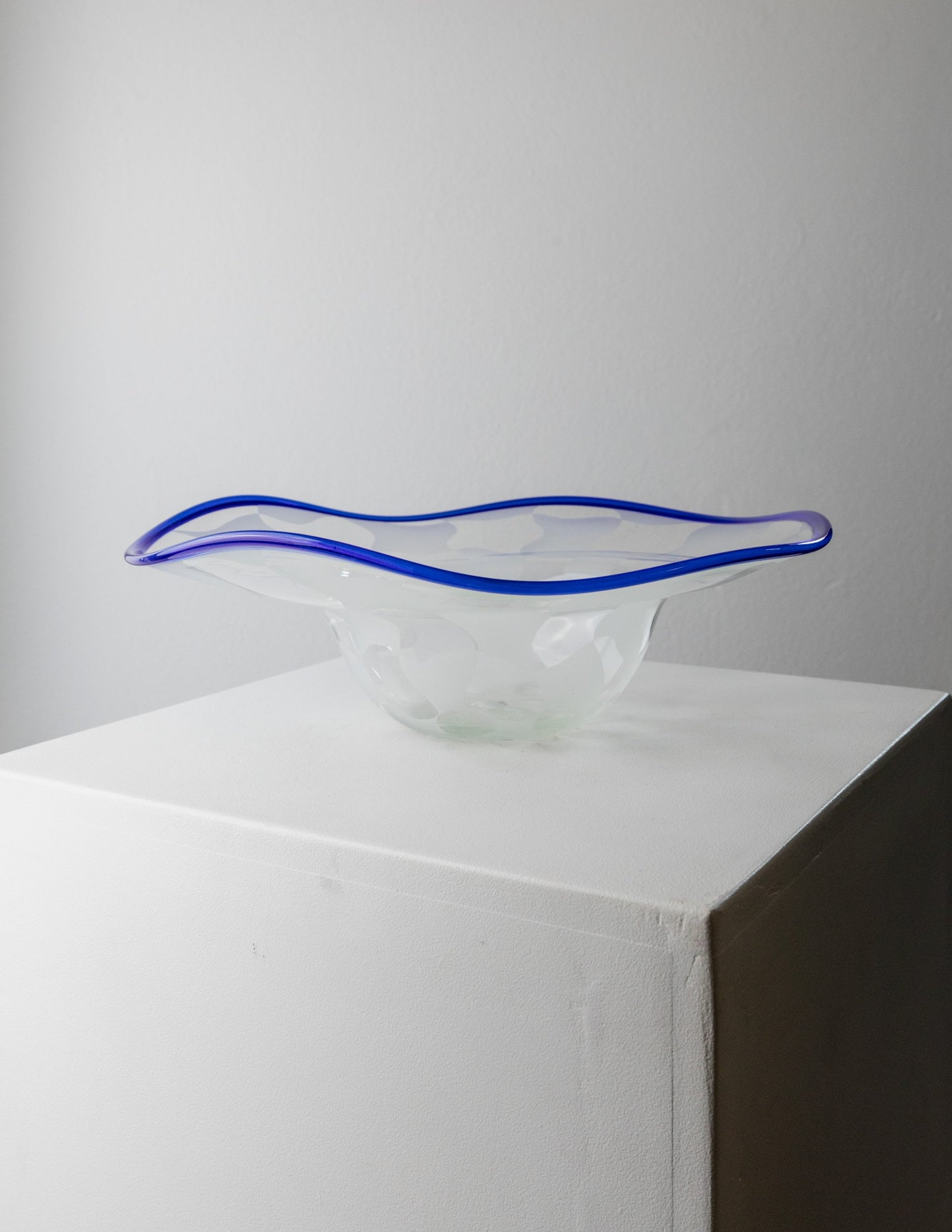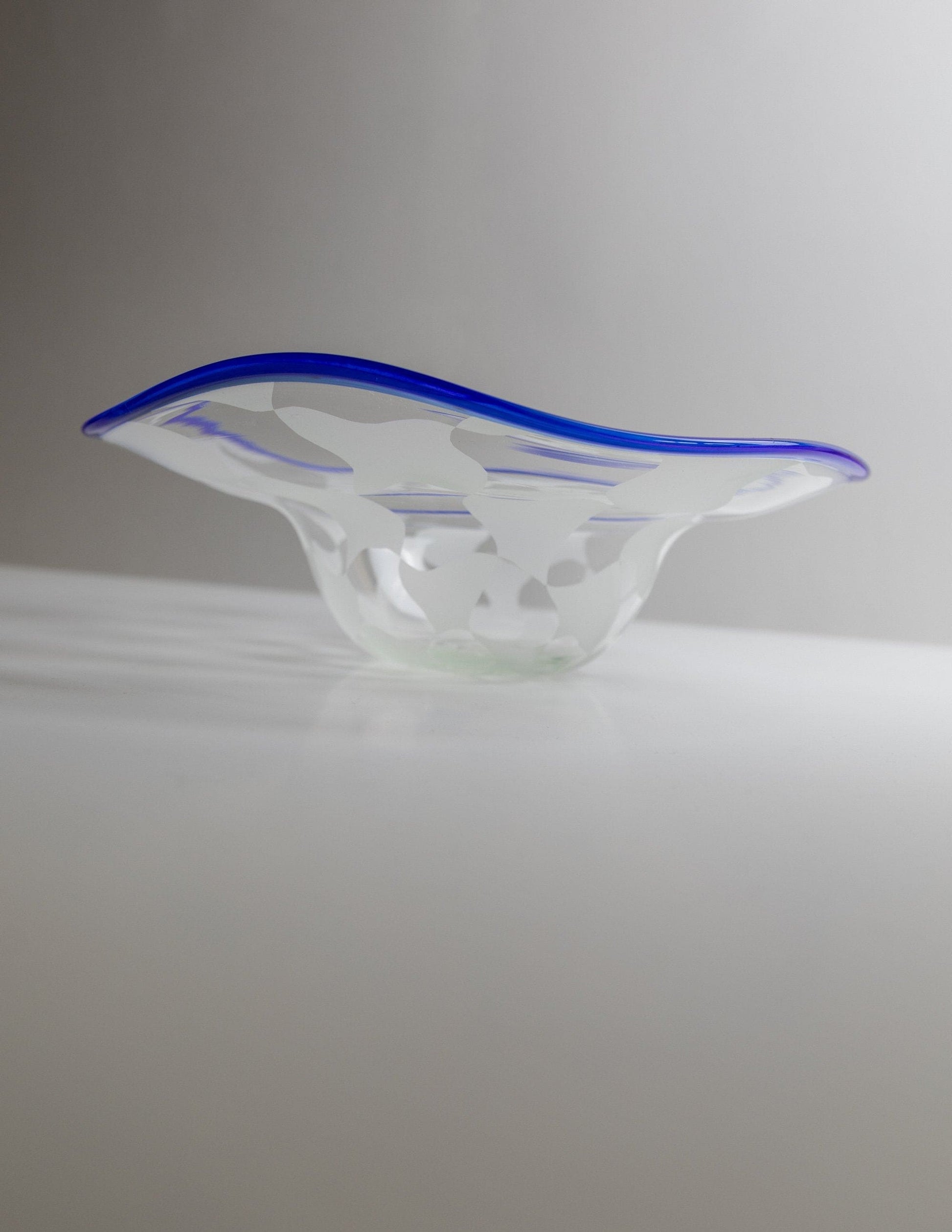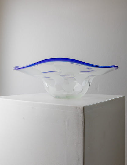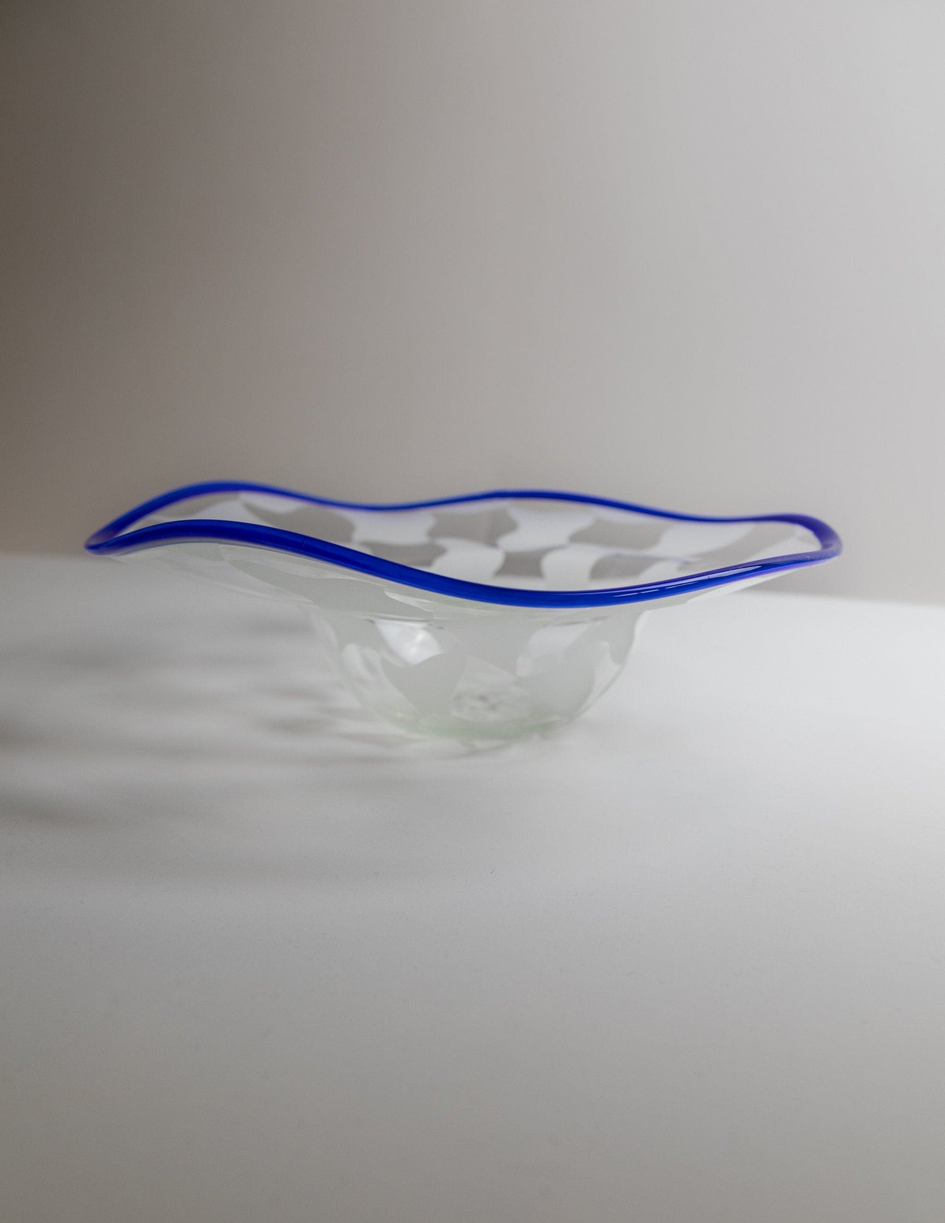 Vintage Murano Glas Schale kariert blau Wellenrand Mid Century Design 1990er