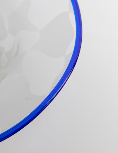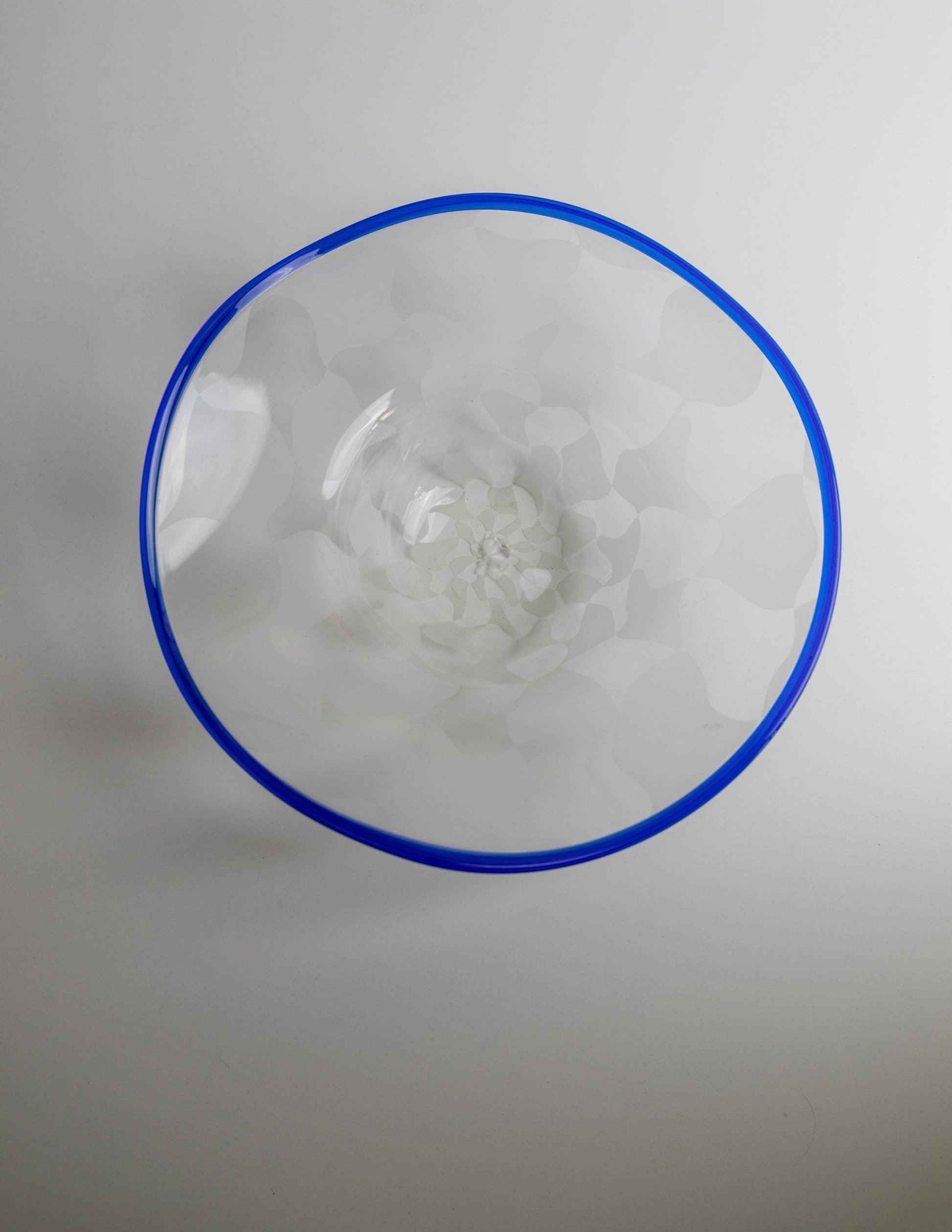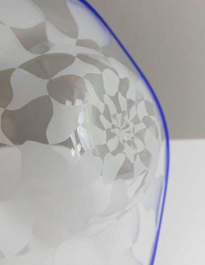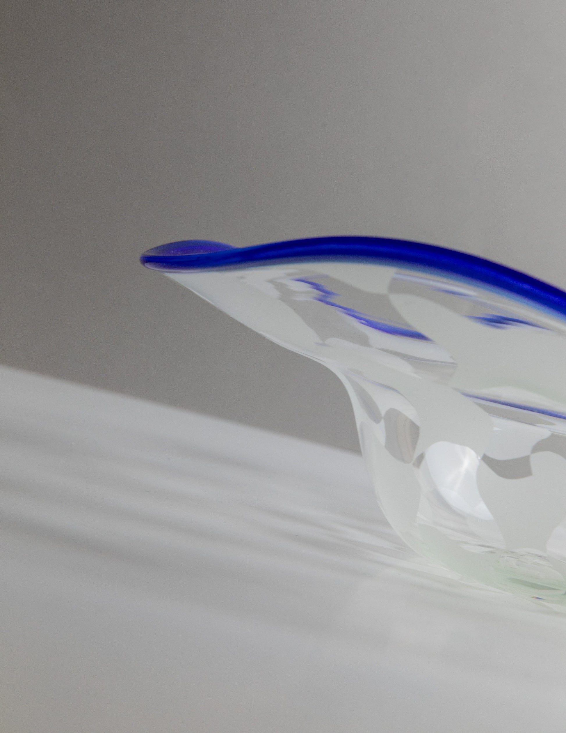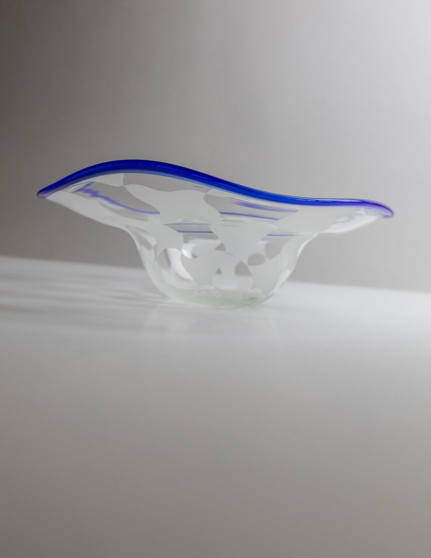 Vintage Murano Glas Schale kariert blau Wellenrand Mid Century Design 1990er