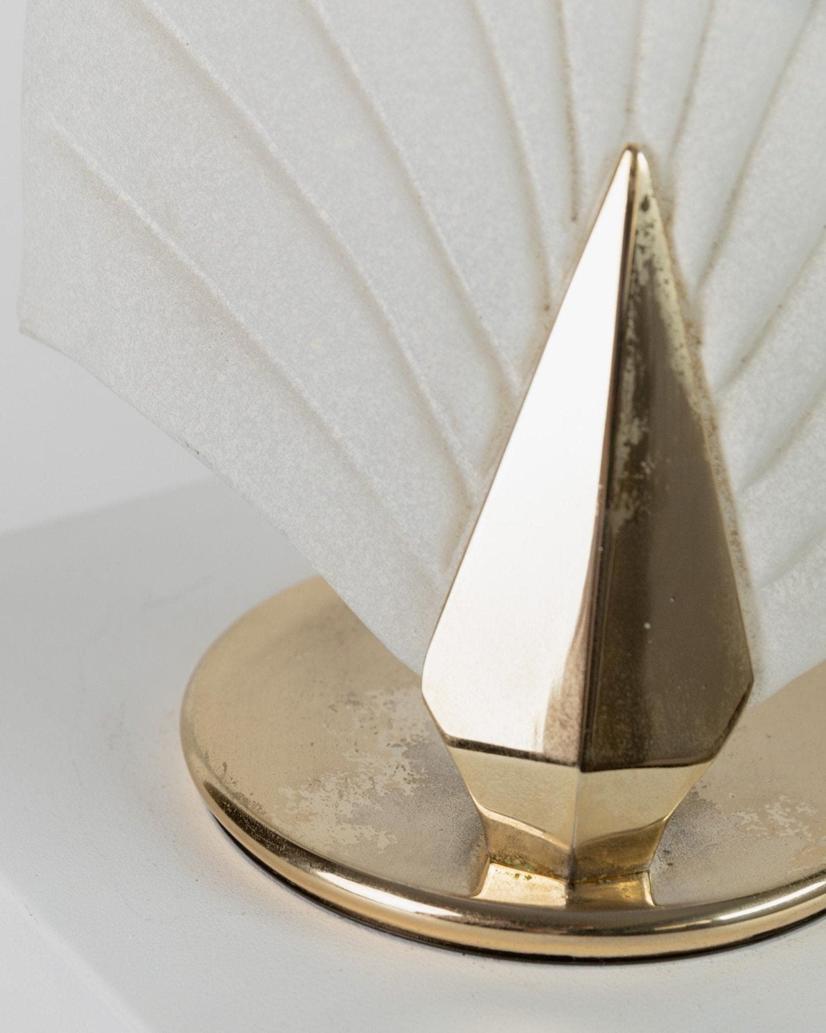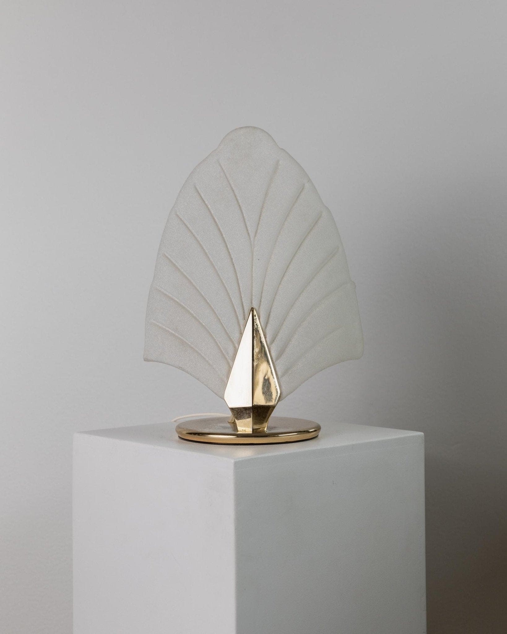 - Blattförmiger Lampenschirm aus satiniertem Glas, goldfarbene Metallbasis