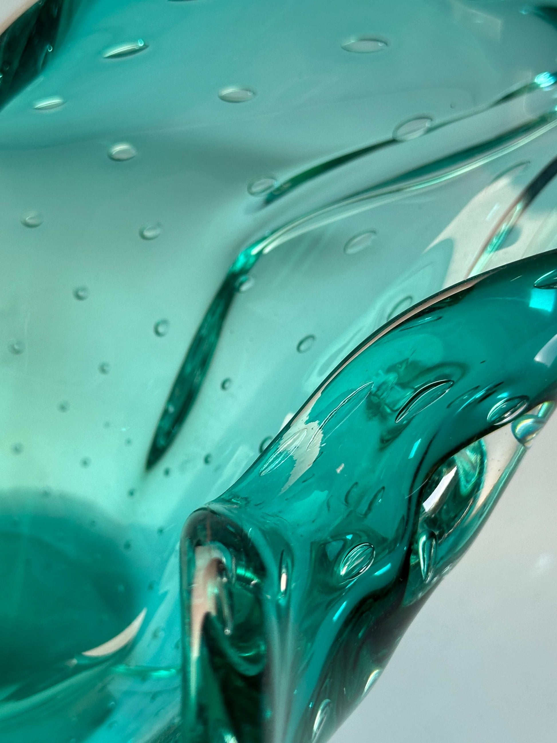 Vintage Obstschale Murano Glas von Barovier Toso Mintgrün Türkis 70er