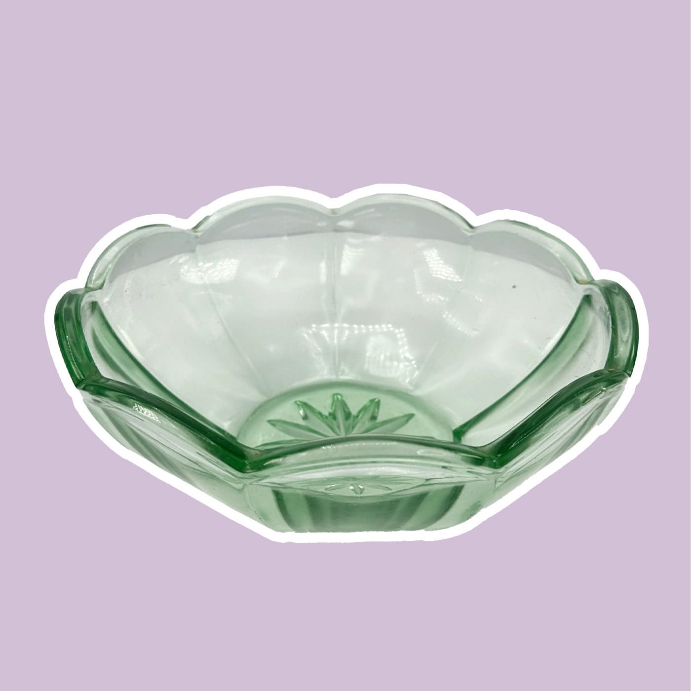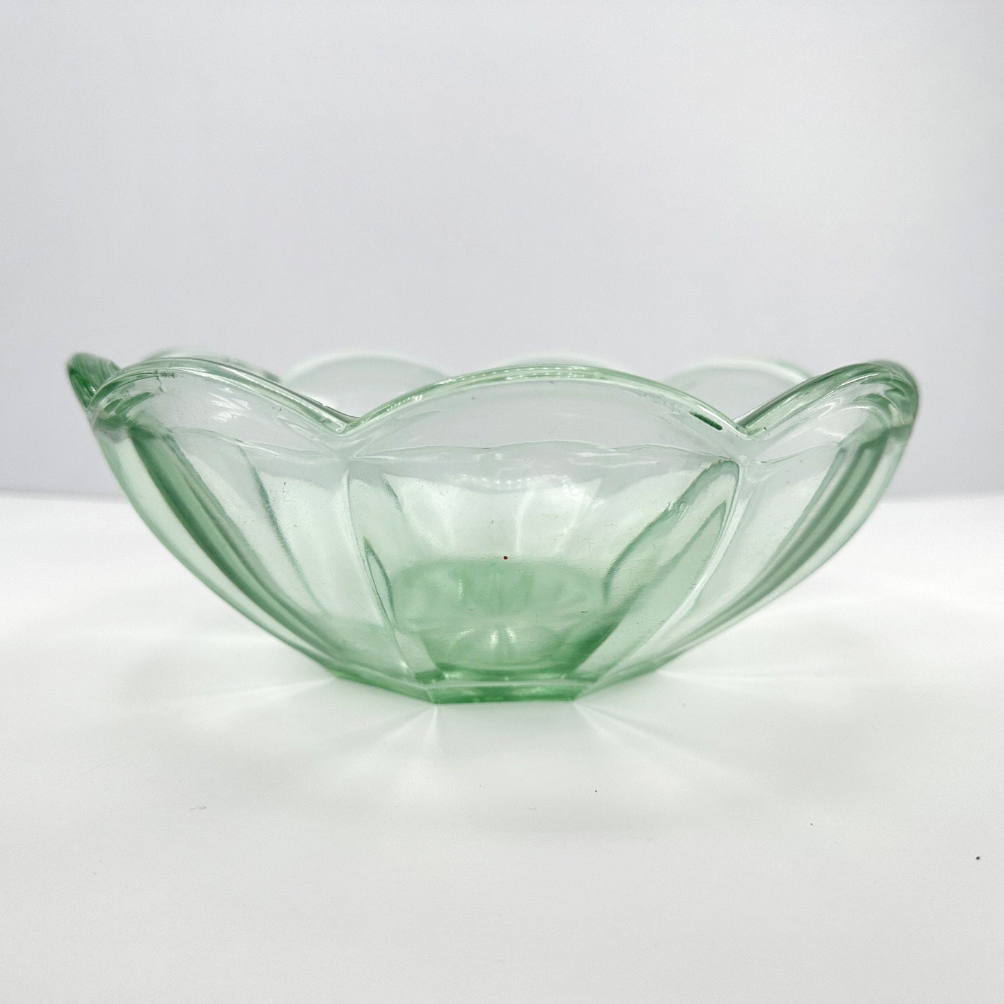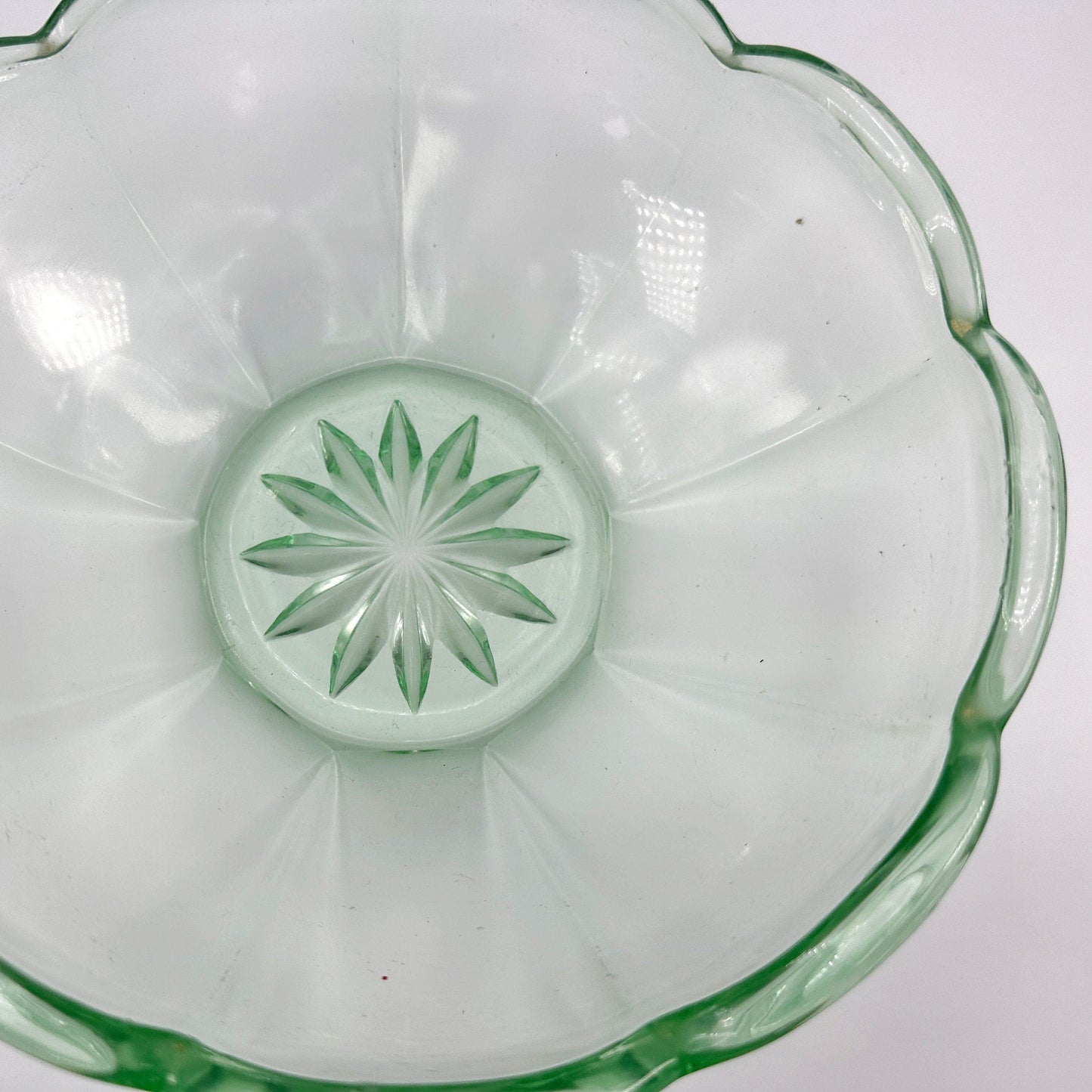 Vintage Fußschale Pressglas Grün Blatt Floral von Luminarc Arcoroc