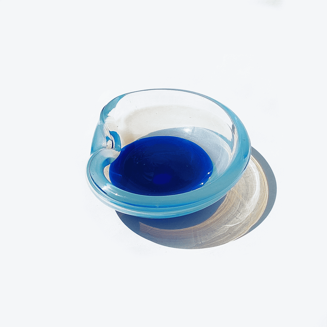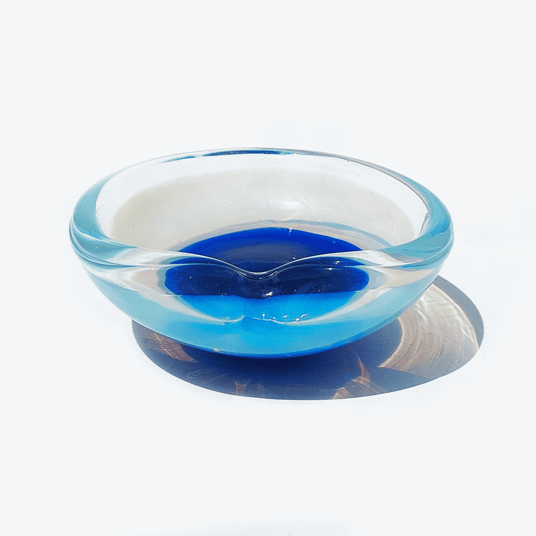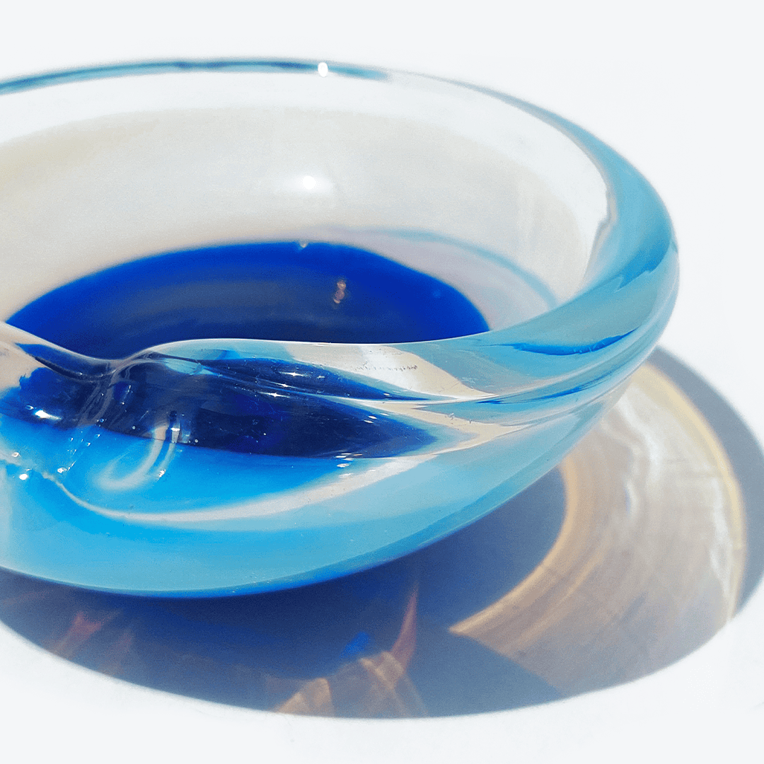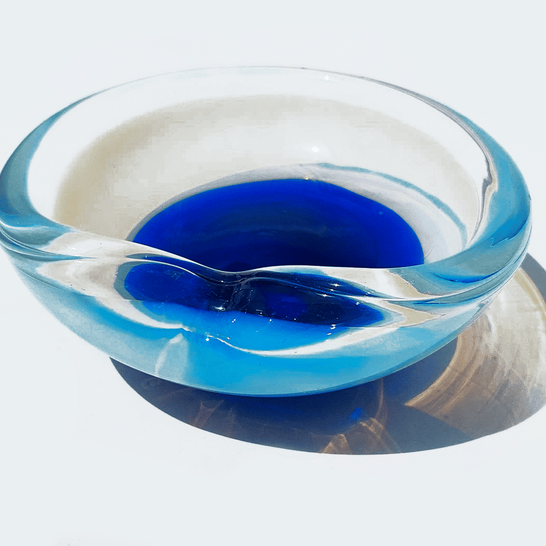 Vintage Schale Murano Glas transparent, marineblau, pastellblau