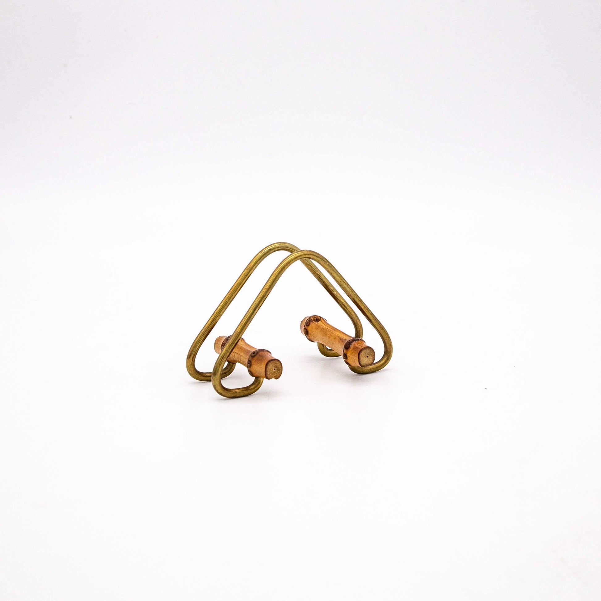 Entdecke den Charme der 1950er Jahre mit dem Vintage Servietten- oder Kartenhalter von Carl Auböck. Dieses exquisite Stück vereint Funktionalität mit dem ikonischen Mid Century Modern Design, das Auböck berühmt gemacht hat. Perfekt für den Einsatz als Untersetzer oder zur stilvollen Präsentation von Servietten und Karten, ist es ein unverzichtbares Accessoire für Designliebhaber.