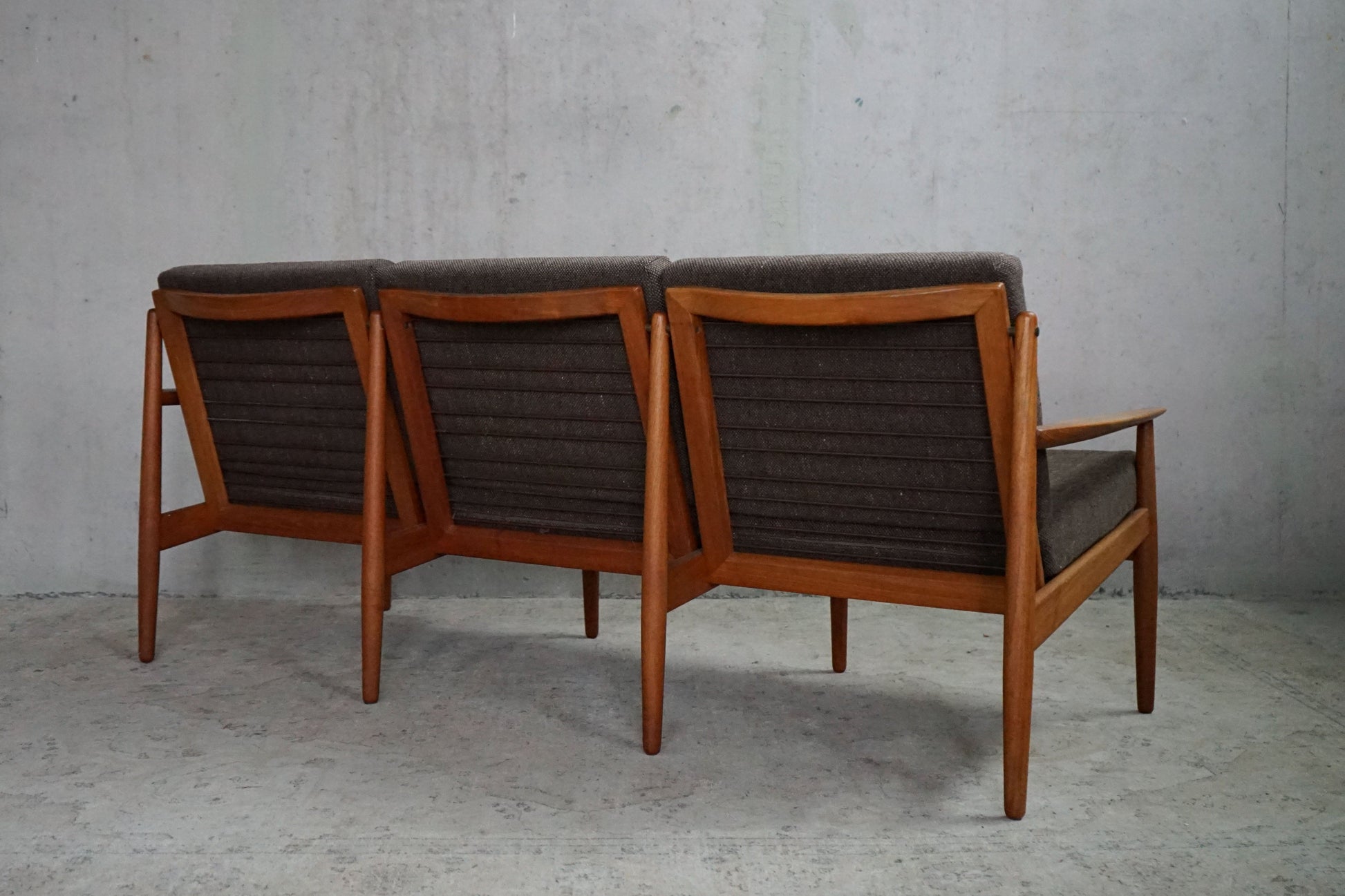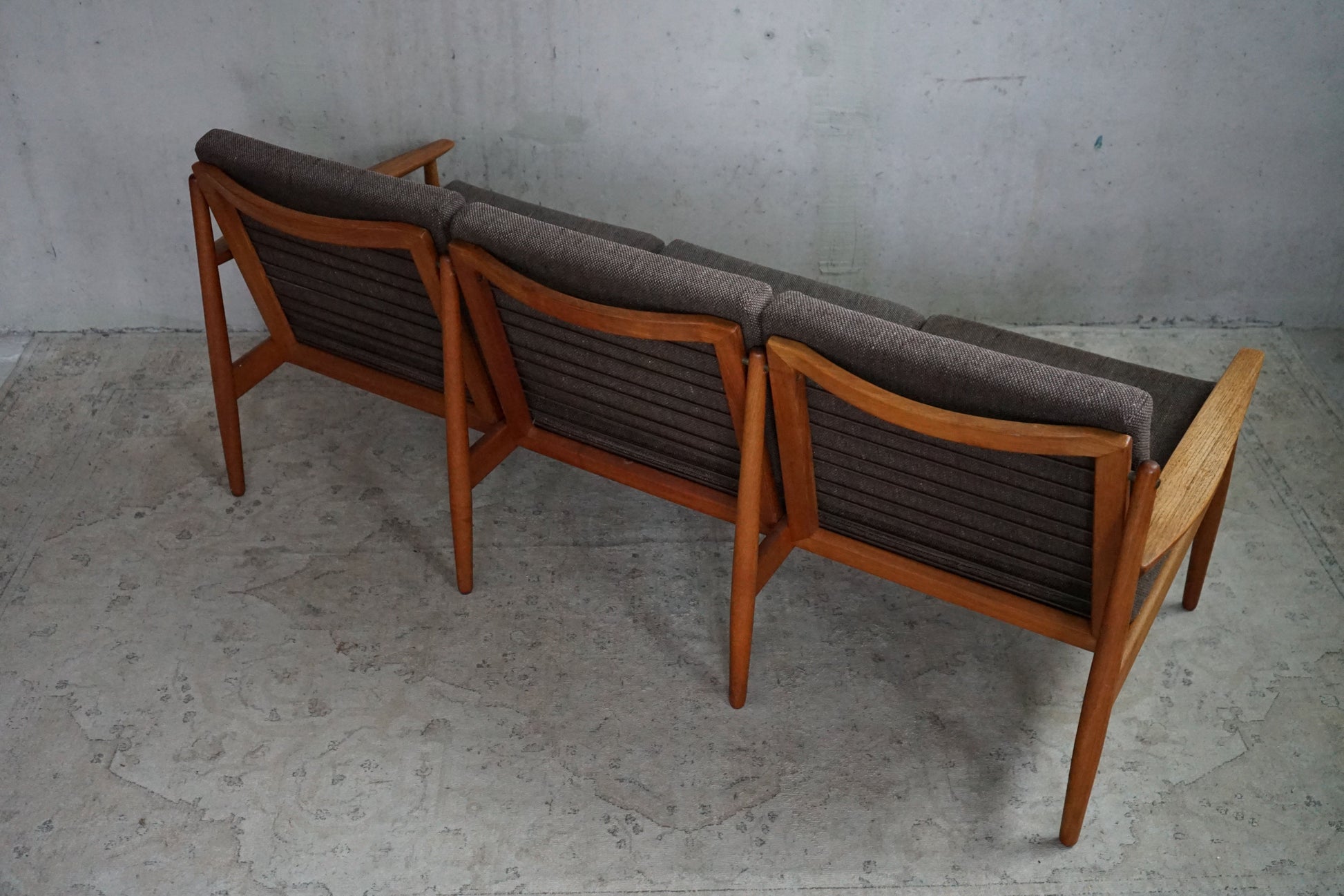 Entdecke das zeitlose Design des Vintage Sofas von Arne Vodder, einem Meisterwerk der dänischen Mid Century Modern Ära. Dieses seltene Stück vereint Eleganz und Funktionalität und ist ein Muss für Liebhaber des Space Age Designs. Die Kombination aus solidem Teakholz und originalem Wollstoff verleiht dem Sofa eine warme und einladende Ausstrahlung. Perfekt für jedes stilvolle Wohnzimmer, bietet es nicht nur Komfort, sondern auch ein Stück Designgeschichte.