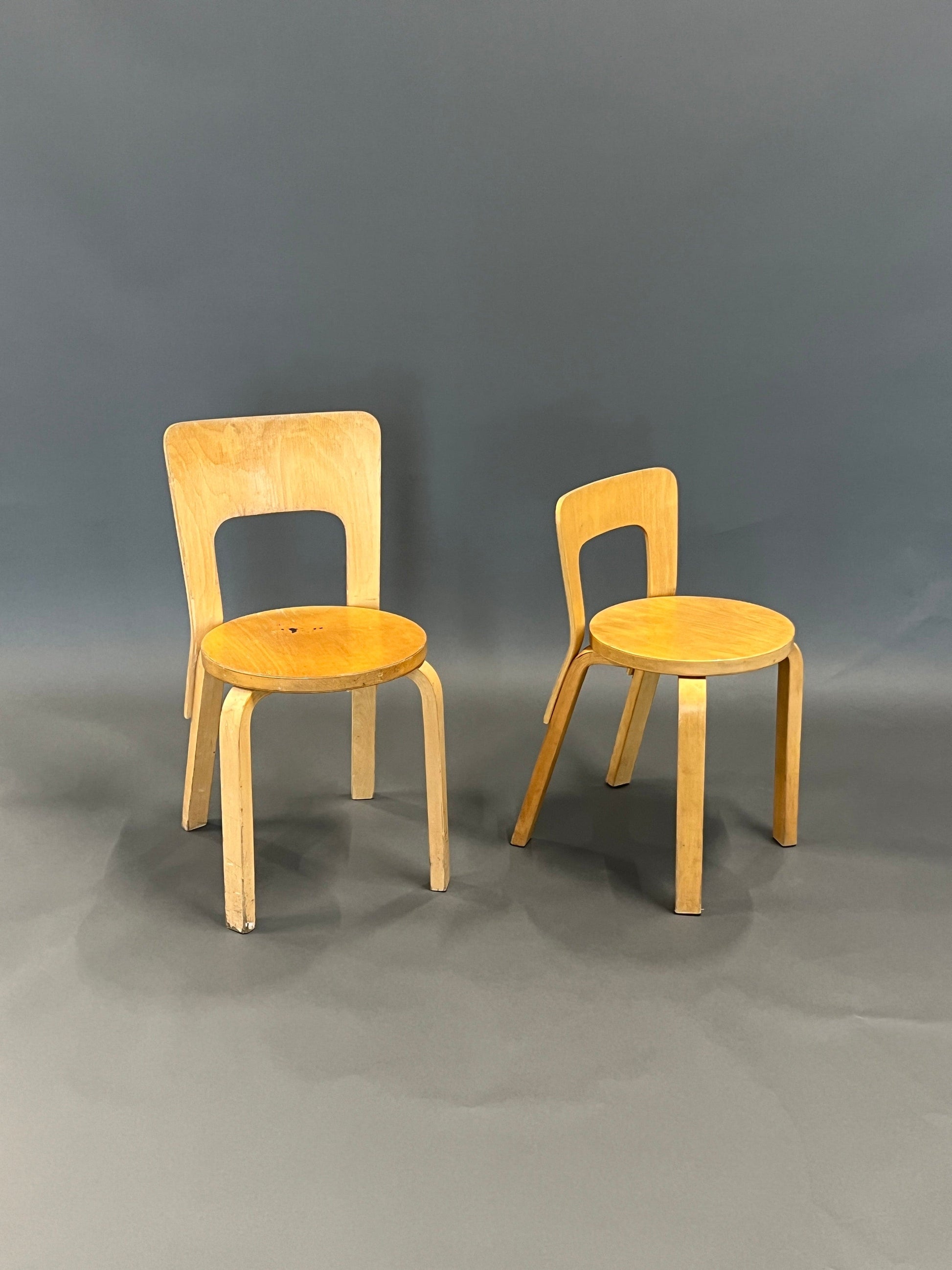 Stuhl 65 von Alvar Aalto bringt die Ruhe des skandinavischen Designs an den Tisch. Klare Linien, Birke und ausgewogene Proportionen zeigen Aaltos Sinn für Funktion und Material. Die niedrige Rückenlehne stützt diskret, die Konstruktion bleibt leicht. Ein Vintage-Exemplar von Artek, das die Moderne der 1930er in die Gegenwart trägt. Es fügt sich selbstverständlich in Esszimmer, Studio oder Homeoffice ein und lässt Raum für Textur und Farbe. Im Set mit vier Stühlen erhältlich.