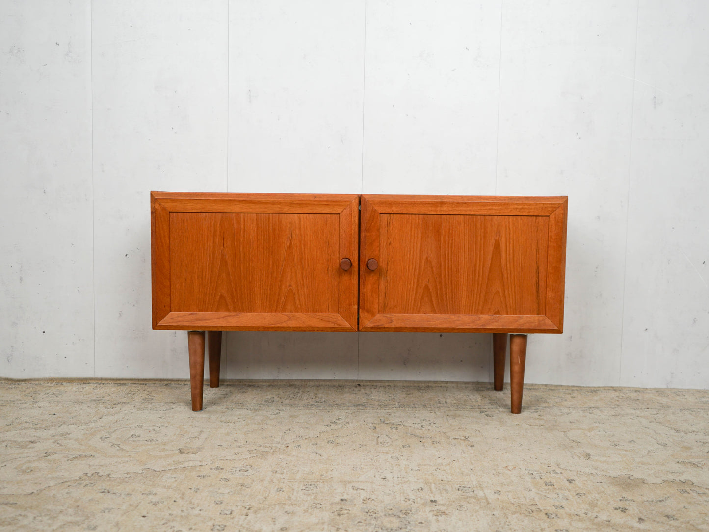 Entdecke das zeitlose Design des dänischen Teak Sideboards aus den 60er Jahren. Dieses Vintage-Stück vereint Funktionalität und Ästhetik in einem atemberaubenden Mid Century Modern Stil. Die warme Teakholz-Oberfläche strahlt Eleganz aus und macht es zu einem perfekten Highlight für jedes Zuhause. Die klaren Linien und das minimalistische Design spiegeln die Essenz des skandinavischen Designs wider.