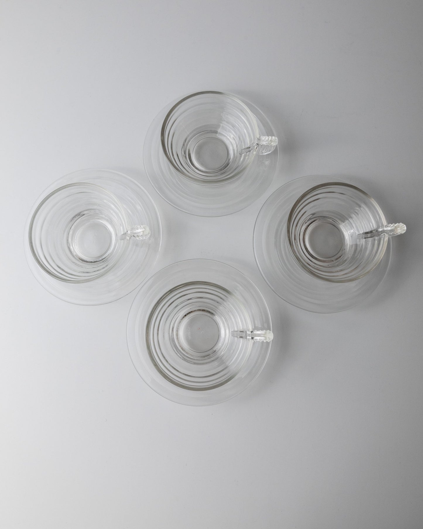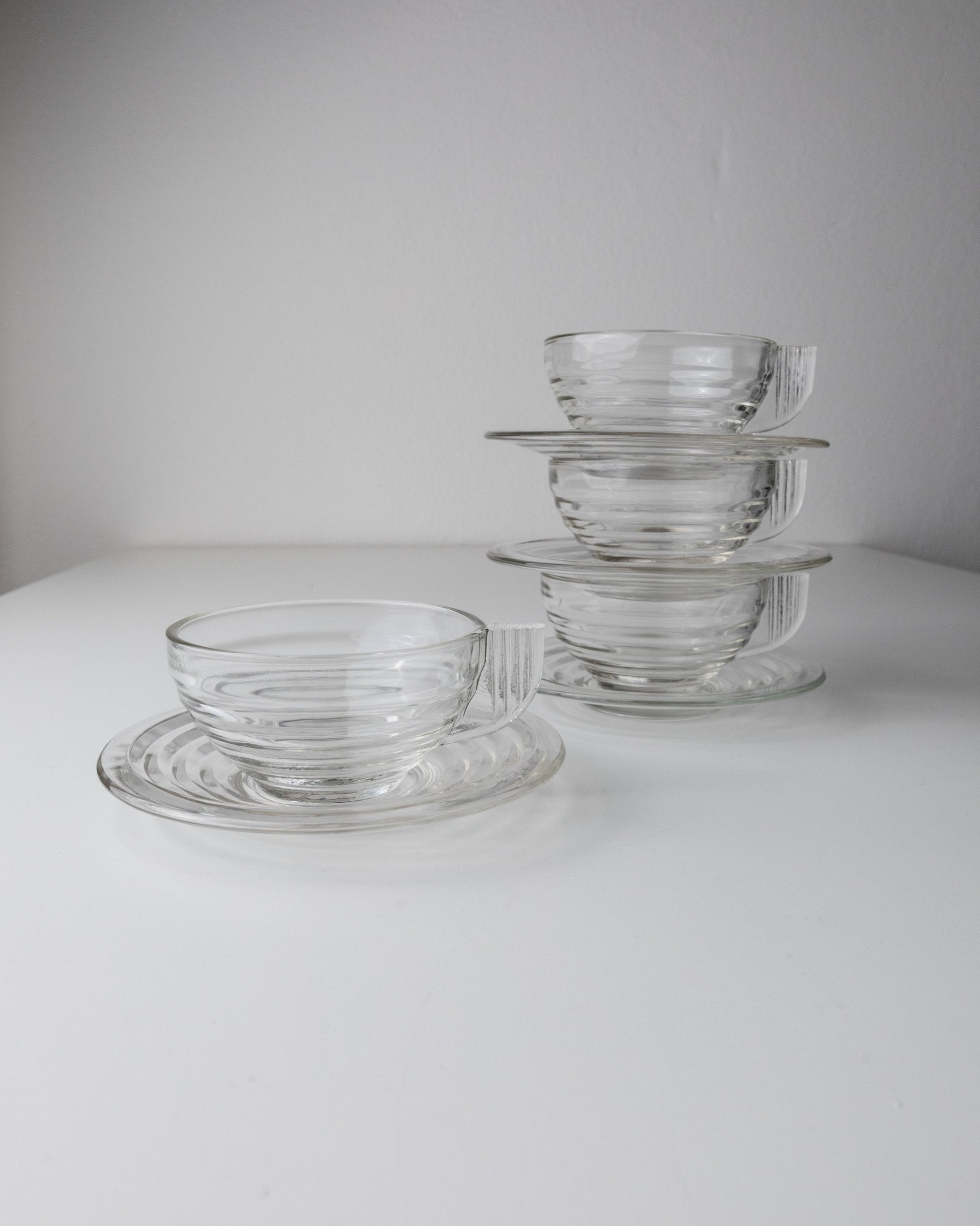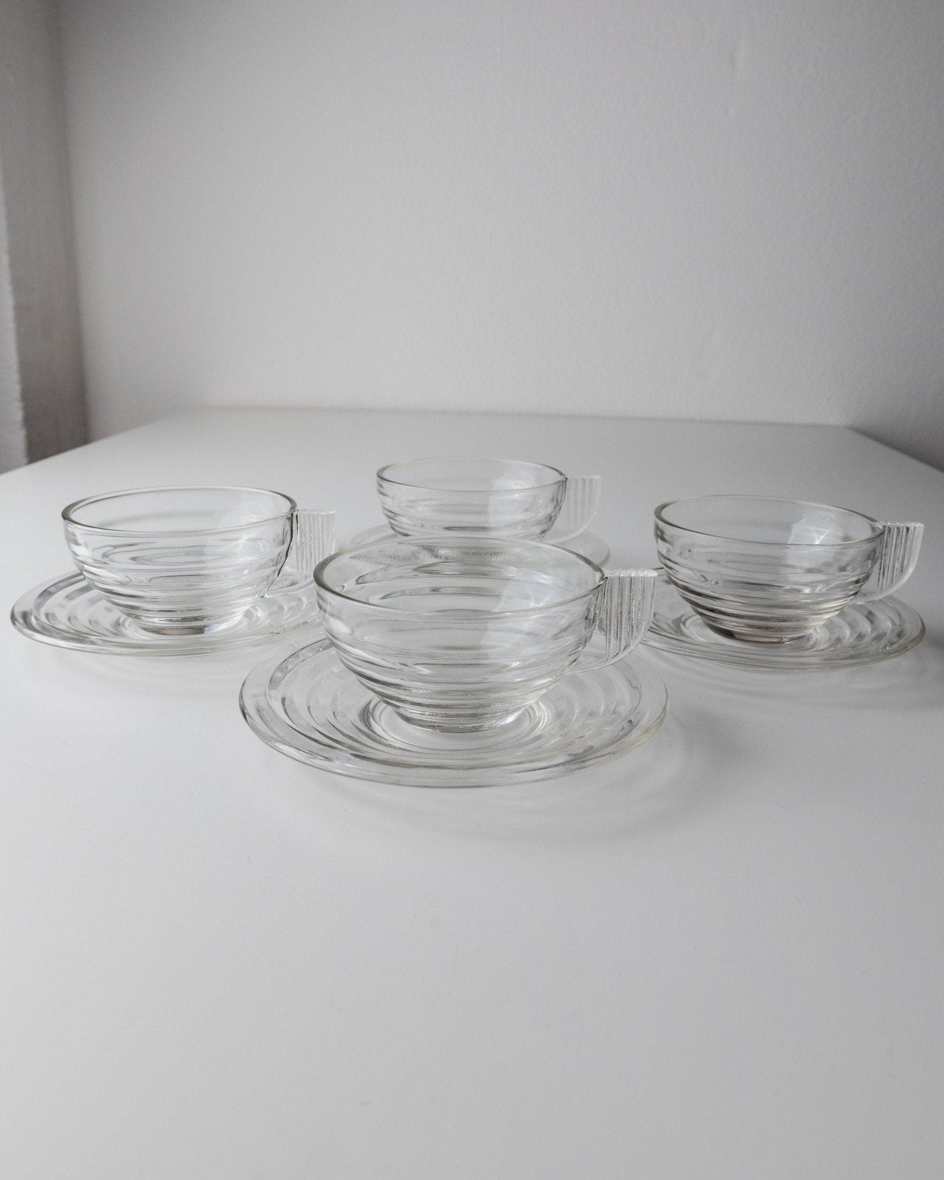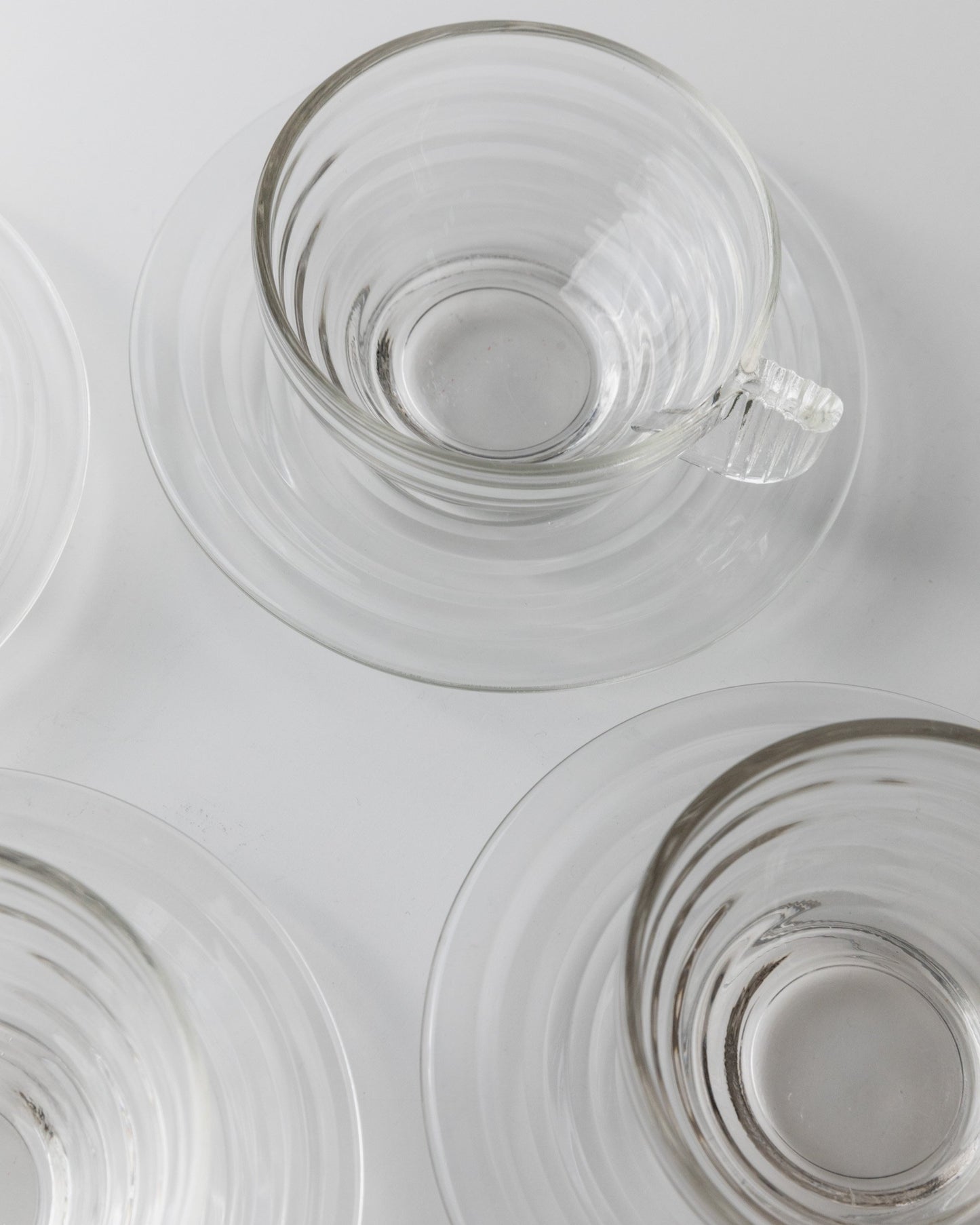 Vintage Teetasse Glas Italien 60er Art Deco transparent Set von 4