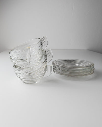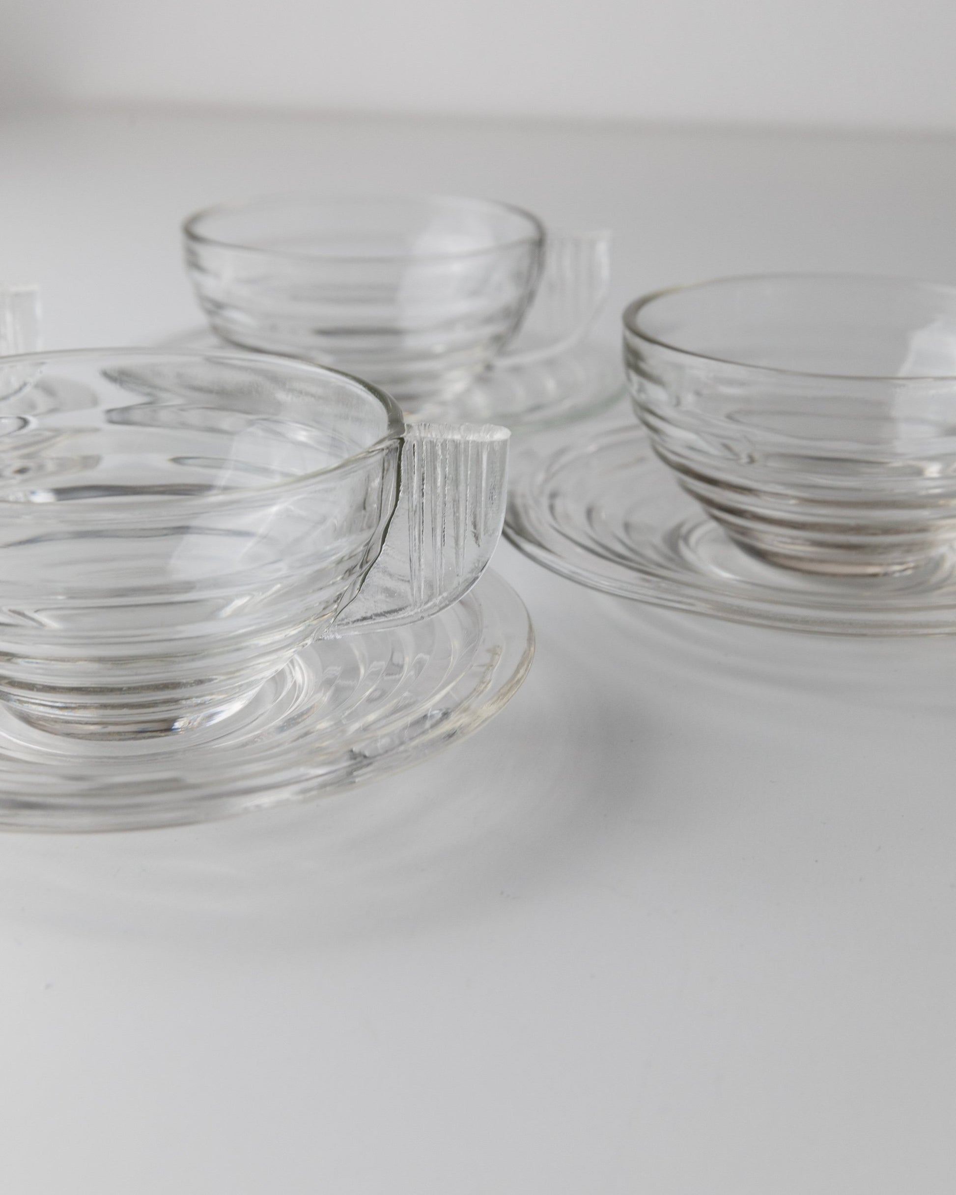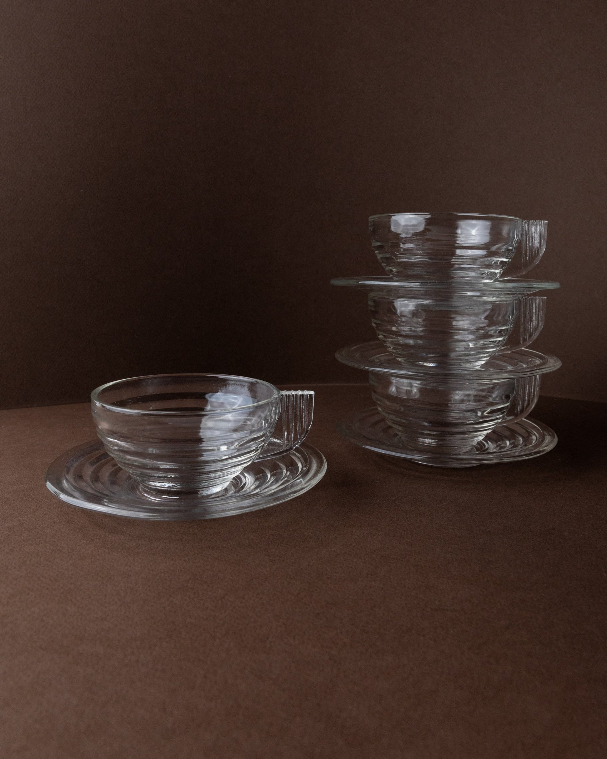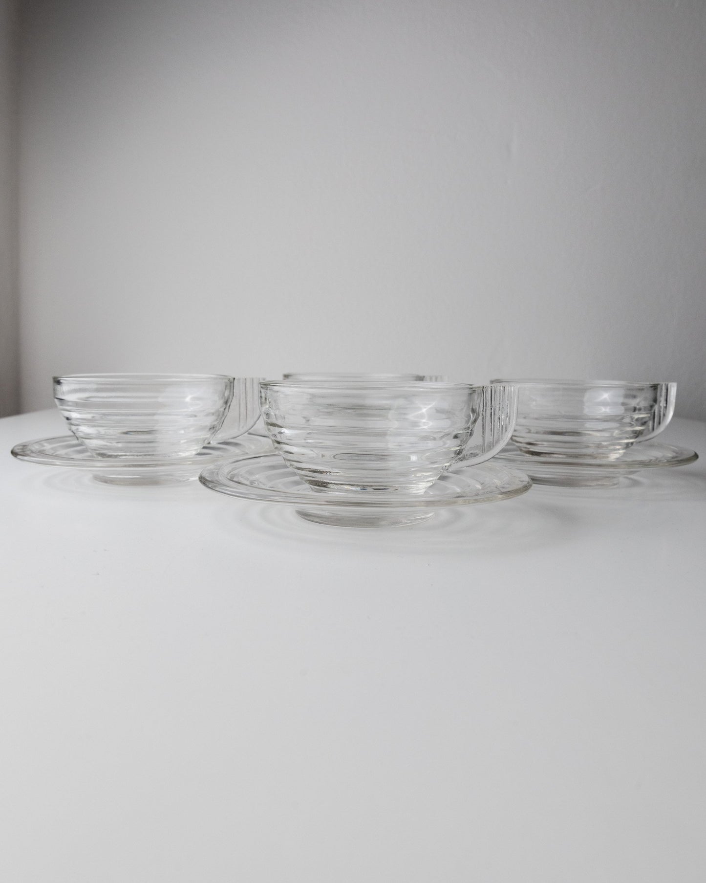 Vintage Teetasse Glas Italien 60er Art Deco transparent Set von 4
