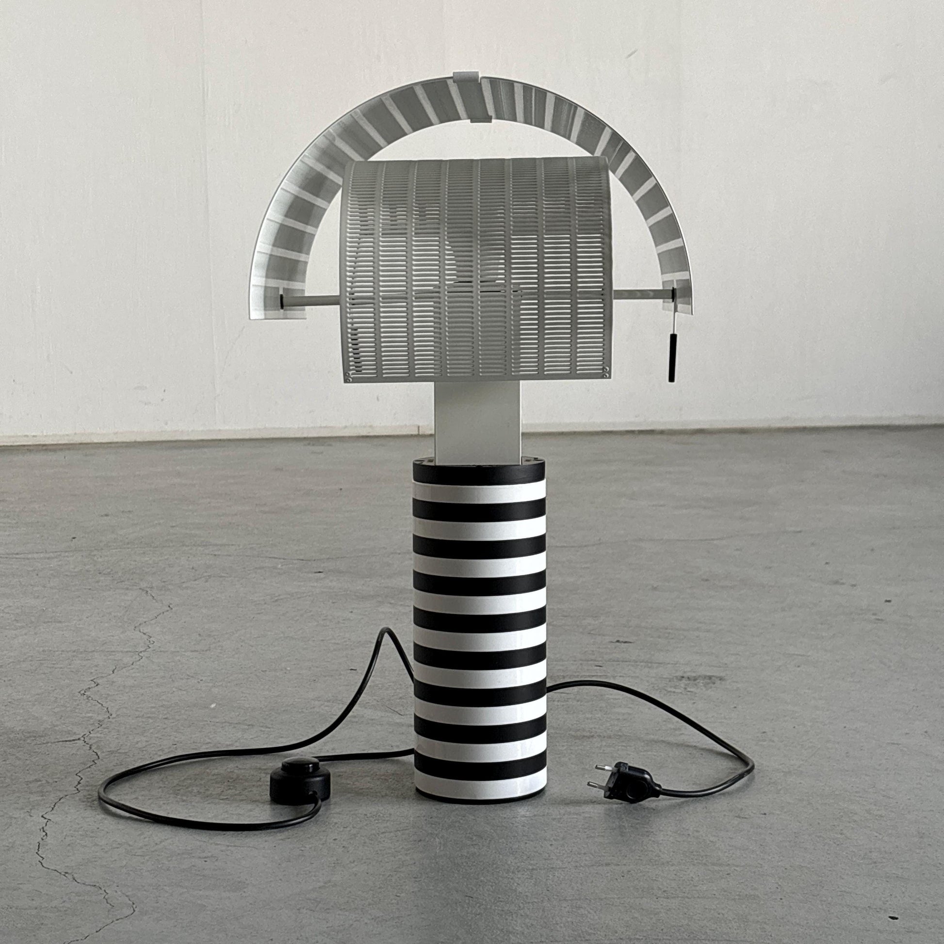 Entdecke die zeitlose Eleganz der Vintage Tischlampe "Shogun" von Mario Botta für Artemide, entworfen im Jahr 1986 in Italien. Diese ikonische Lampe verkörpert die Essenz des Space Age Designs und ist ein Meisterwerk der Mid-Century Modern Ära. Mario Botta, bekannt für seine geometrischen Formen, hat mit der "Shogun" Lampe ein Kunstwerk geschaffen, das sowohl funktional als auch ästhetisch ansprechend ist. Die Lampe ist ein perfektes Beispiel für sehr gute Qualität und Handwerkskunst.