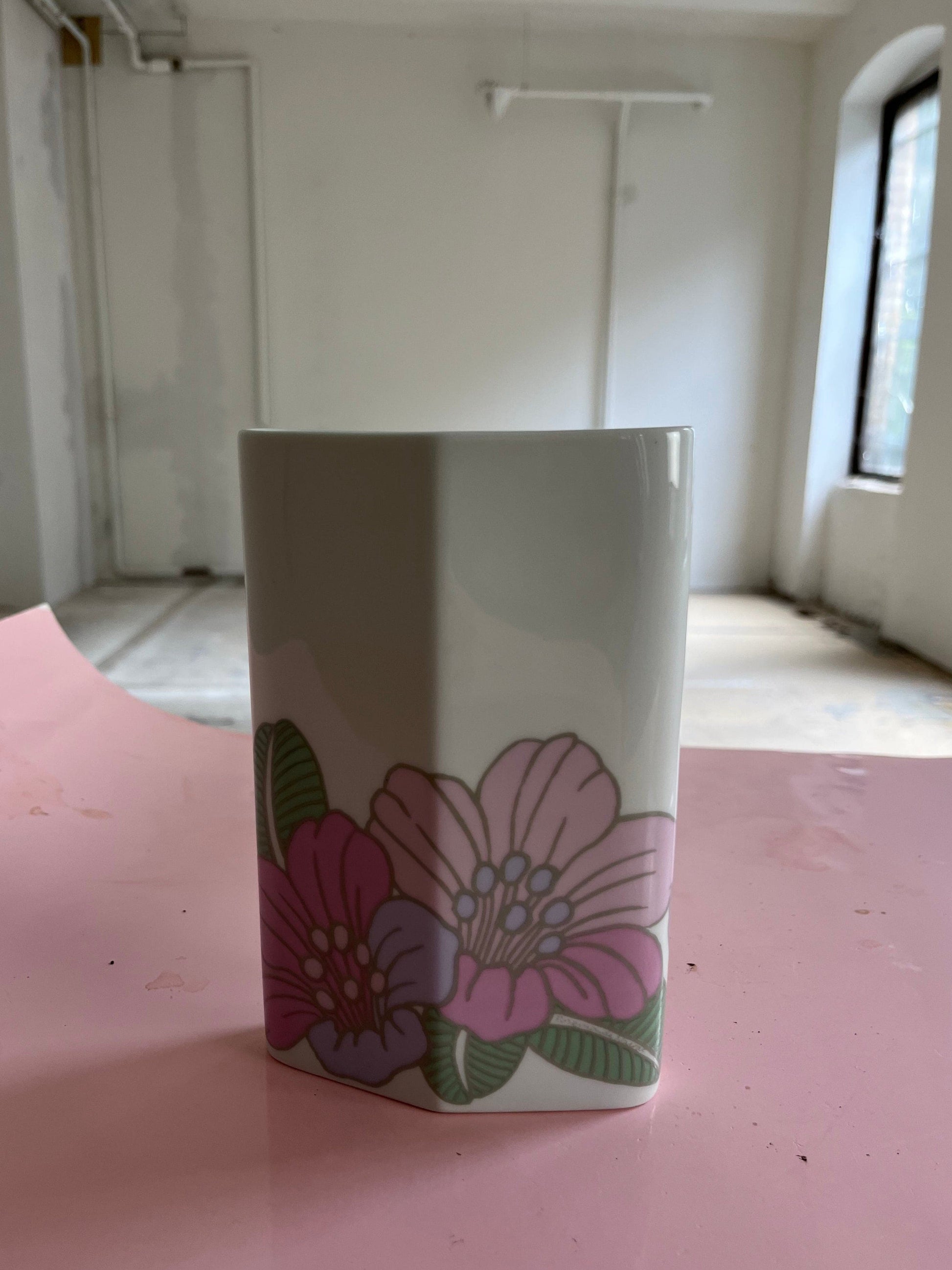 Die Vintage Vase Morning Glory ist ein einzigartiges Sammlerstück, das von Rosemunde Nairac und Tapio Wirkkala für Rosenthal entworfen wurde. Das zarte Blütenmuster stammt von Nairac, während die elegante Form von Wirkkala gestaltet wurde. Die Vase vereint künstlerische Raffinesse mit zeitloser Ästhetik und bringt einen Hauch von Vintage-Charme in Dein Zuhause. Perfekt als dekoratives Highlight oder als stilvolles Geschenk.