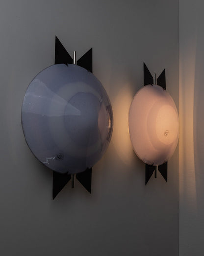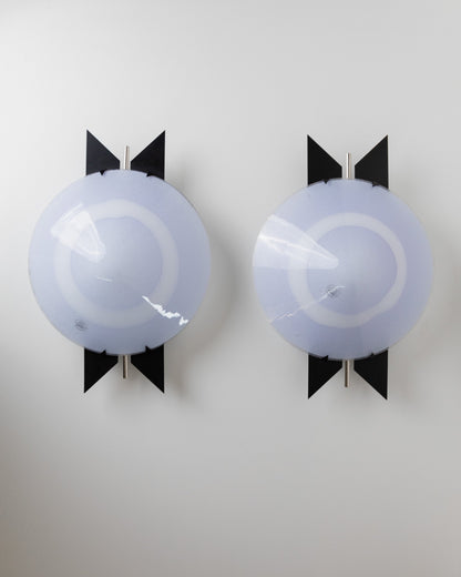 Vintage Wandleuchte Murano Glas hellblau, schwarz Memphis Stil 1980er Set von 2