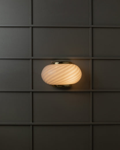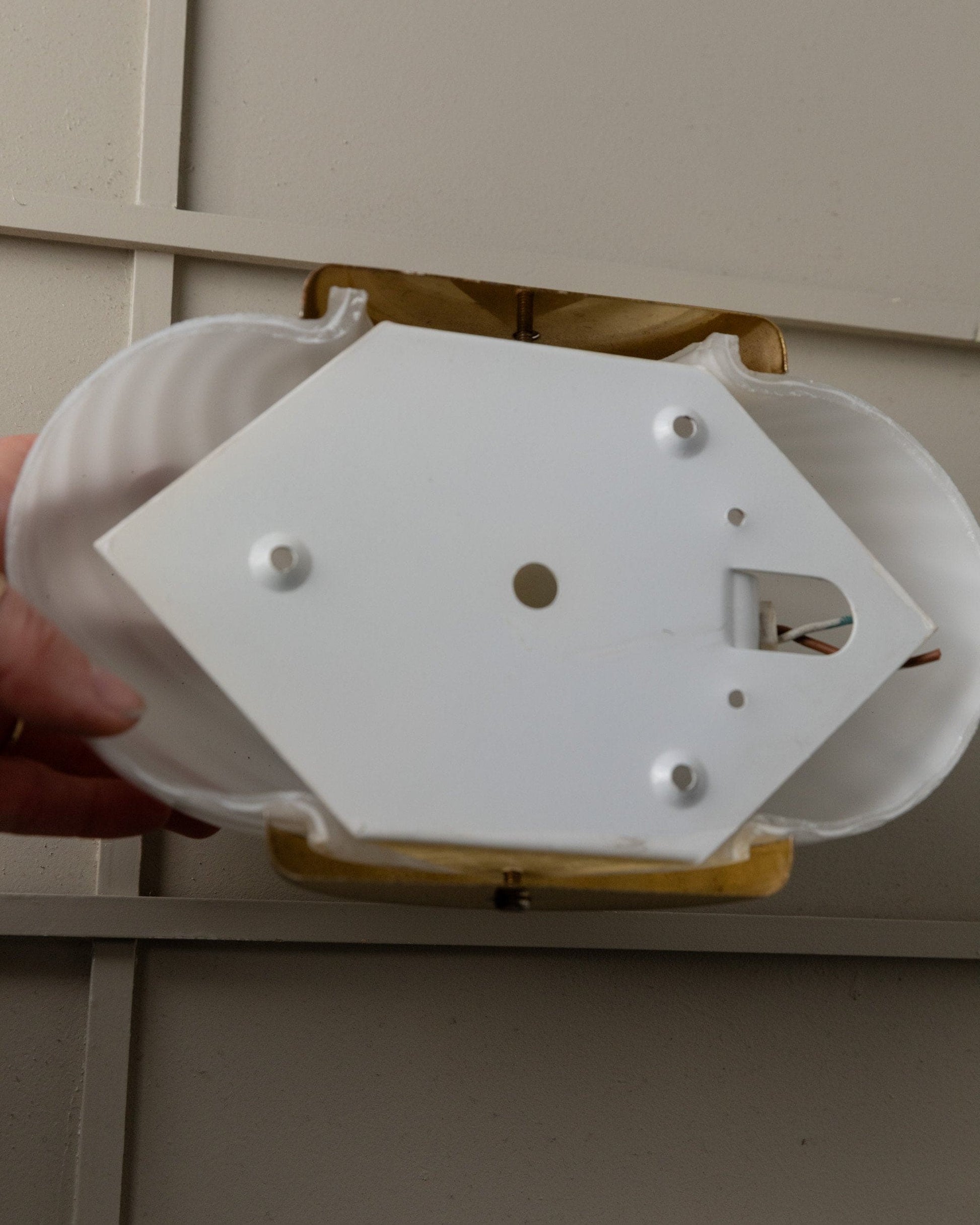 Vintage Wandleuchte Murano Glas Swirl Muster Weiß Messing Hollywood Regency 1970er