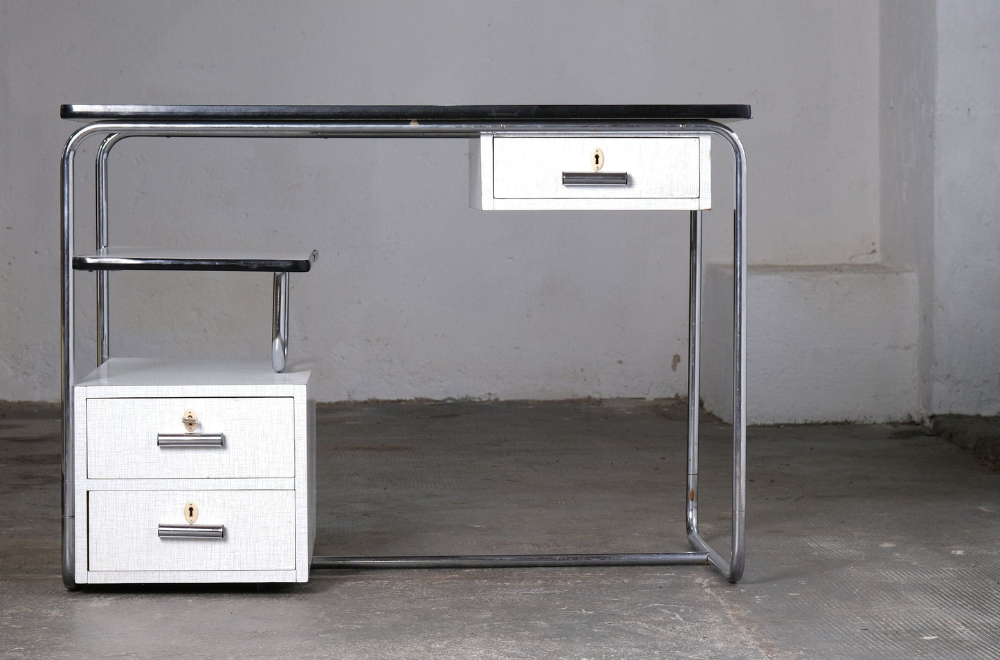 Vintage Schreibtisch Bauhaus Design Weißer Funktionalismus 70er 80er Jahre